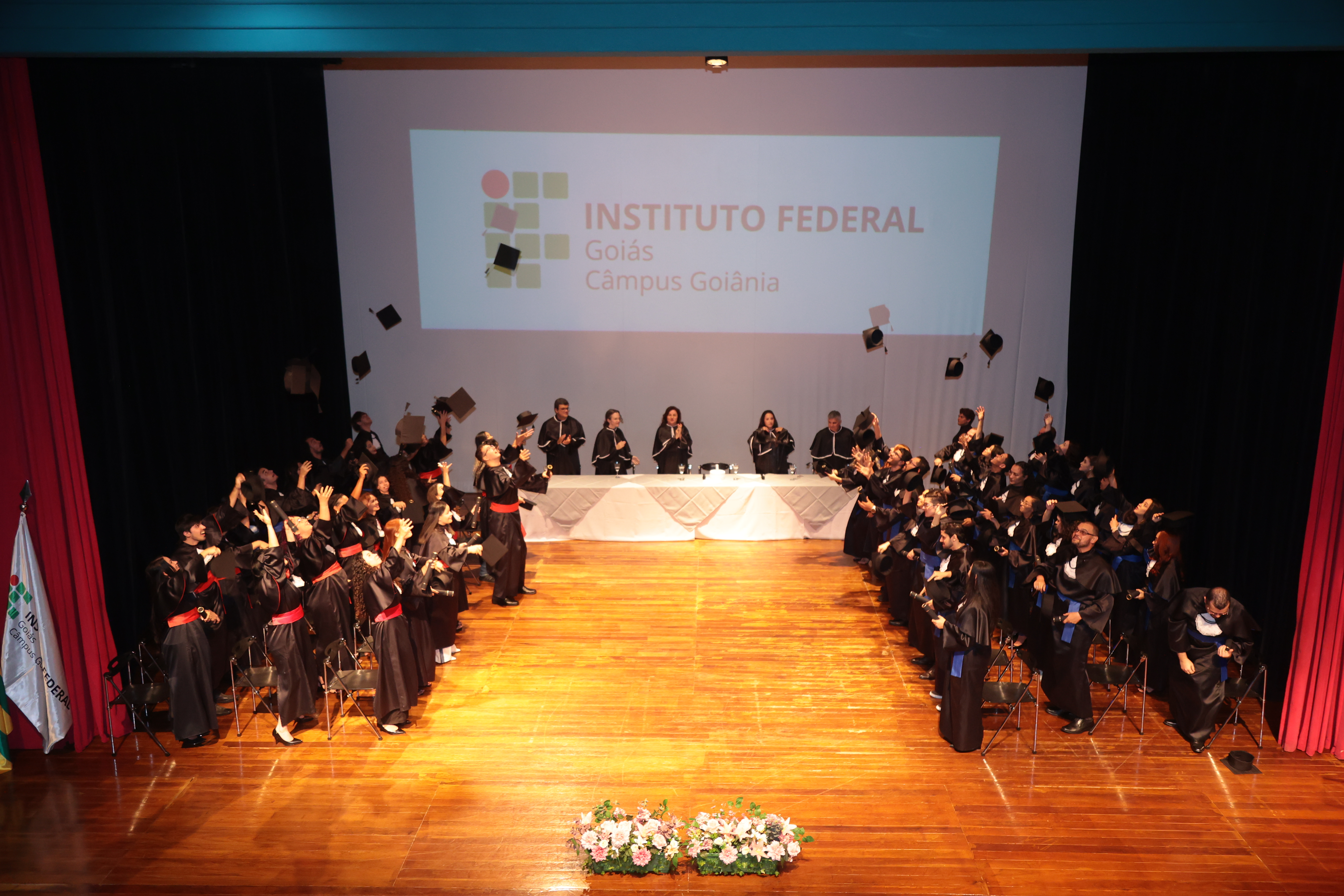 Colação de Grau realizada na noite do dia 4 de julho, no Teatro do IFG, no Câmpus Goiânia.
