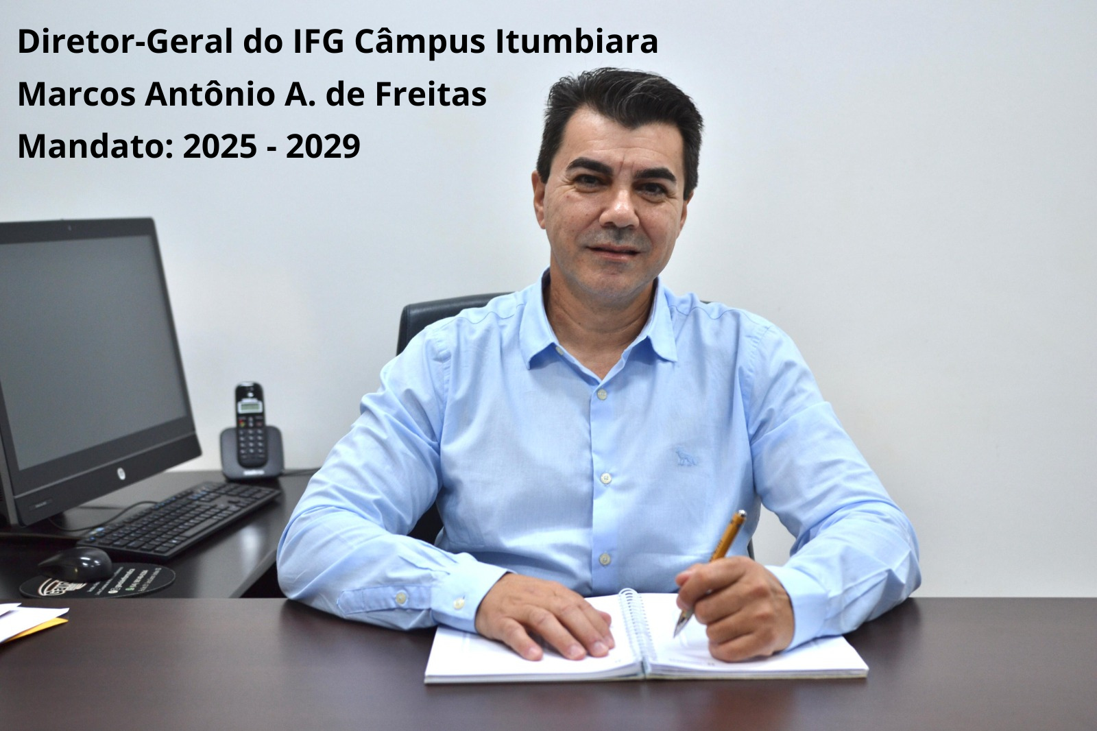 O professor Marcos Antônio Arantes de Freitas é graduado em Engenharia Elétrica pela Universidade do Estado de Minas Gerais e possui mestrado, doutorado e pós-doutorado em Engenharia Elétrica pela Universidade Federal de Uberlândia (UFU). Ele ingressou no IFG no ano de 2006 e está na Unidade de Itumbiara desde 2008. Marcos Antônio ocupou o cargo de Chefe de Departamento de Áreas Acadêmicas do Câmpus Itumbiara de 2012 a 2014 e também de 2014 a 2016. E de julho de 2018 a setembro de 2021 foi coordenador do curso de Bacharelado em Engenharia Elétrica.