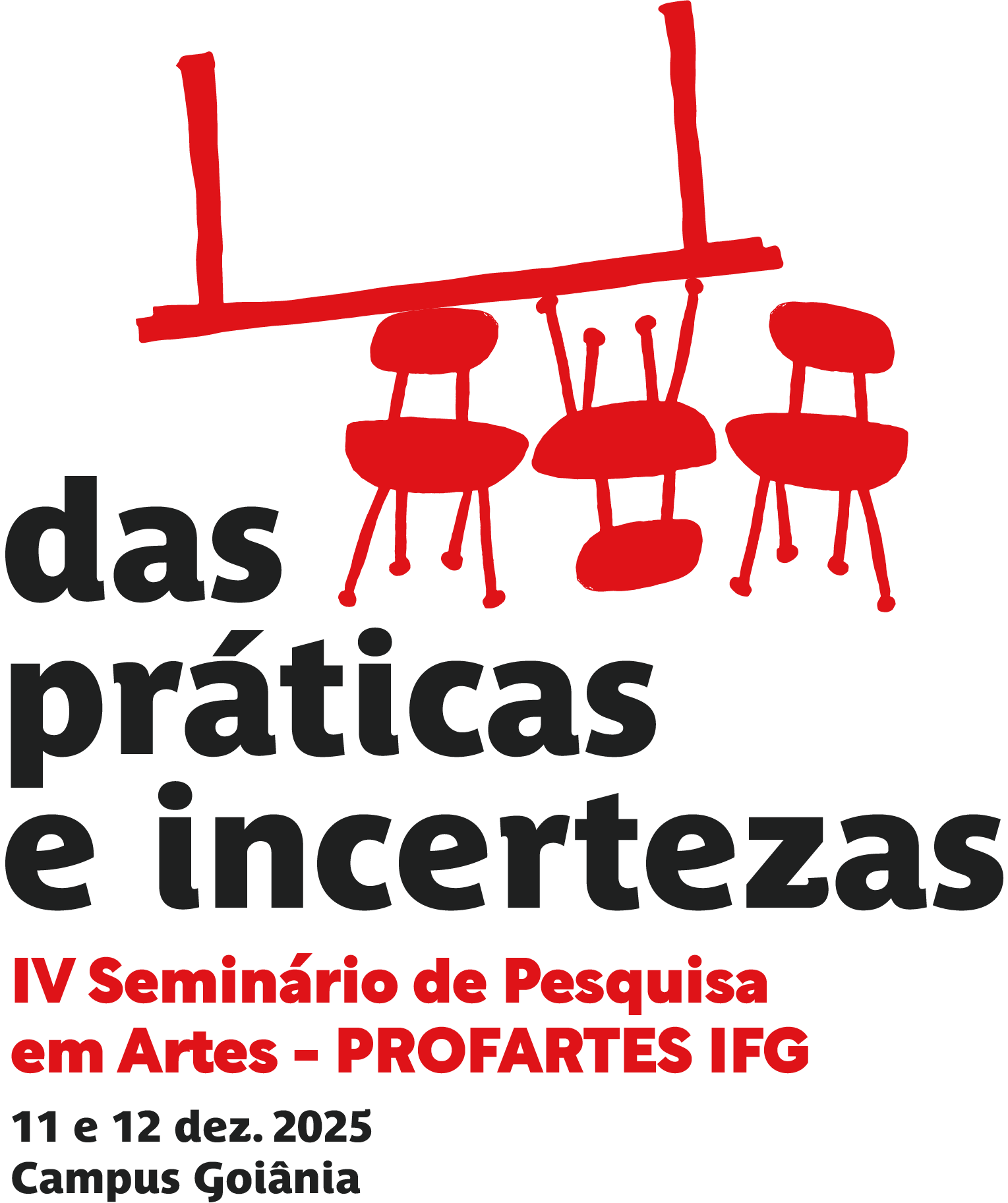 Das práticas e incertezas, tema do IV Seminário de Pesquisa em Artes – PROFARTES IFG, é uma provocação para se pensar nos movimentos do agora das práticas docentes em Artes Visuais, Dança, Música, Teatro e Audiovisual, no âmbito da Educação Básica. Práticas que são mediadas pelas incertezas, uma vez artísticas, metafóricas e pedagógicas. Nesta edição, o evento promovido pelo Programa de Pós-Graduação em Artes - PROFARTES / Mestrado Profissional em Artes - IFG, pesquisador@s de cursos de pós-graduação e graduação estão convidad@s a dividir suas experiências com o Ensino de Arte, as quais são objetos de suas pesquisas, em andamento ou já concluídas. O evento também celebra o humano e suas questões inerentes às práticas do sobre-viver, mediadas pelas poesias das artes.