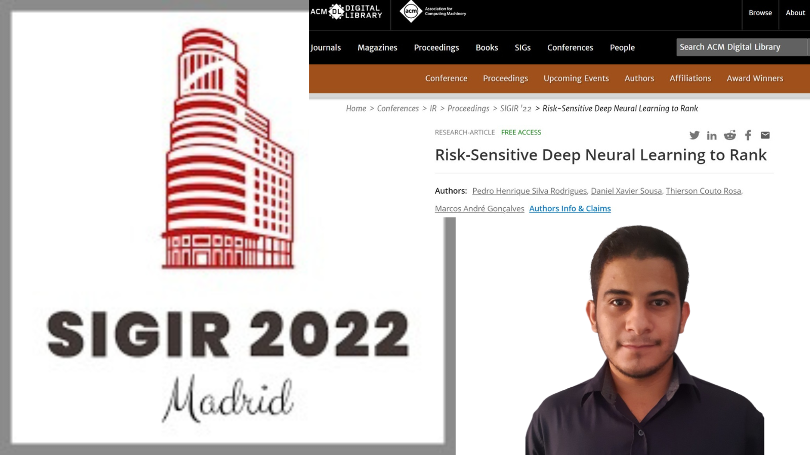 ACM SIGIR é a Conferência Anual da Association for Computing Machinery Special Interest Group in Information Retrieval. Pedro Rodrigues foi aluno da primeira turma do curso de bacharelado em Ciência da Computação no Câmpus Anápolis, tendo se formado em 2019. Logo em seguida, foi aprovado em alguns dos melhores programas de mestrado do país – na UFRGS, Unicamp e UFMG. Escolheu a UFMG, onde continuou como orientando de seu professor no IFG, Daniel Xavier de Sousa.