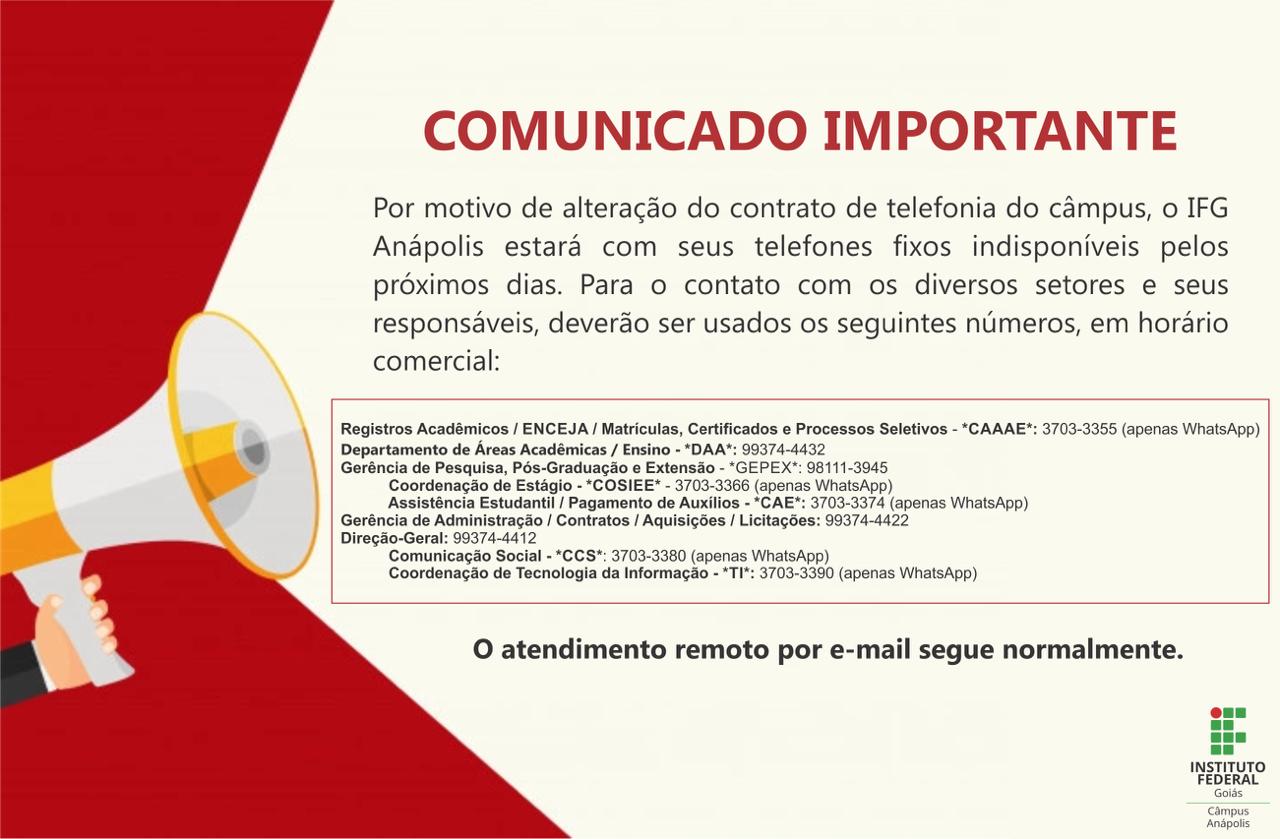 IFG/ Câmpus Anápolis - Telefone (PABX) e e-mail