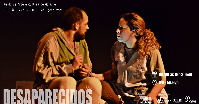 A peça a ser apresentada no Câmpus Aparecida de Goiânia é a mais recente montagem da Cia de Teatro Cidade Livre: “Desaparecidos”.  Pouco explorado no campo das artes da cena no Brasil, a temática dos desaparecimentos forçados e de civis na América Latina é, ao longo da história, um fato presente e recorrente. Com texto da boliviana Claudia Eid Asbún e direção do ator e diretor Narciso Telles, a peça coloca em cena o tema dos desaparecimentos na Latino América.