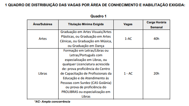 São ofertadas vagas para as áreas de Artes (40h) e Libras (20h)