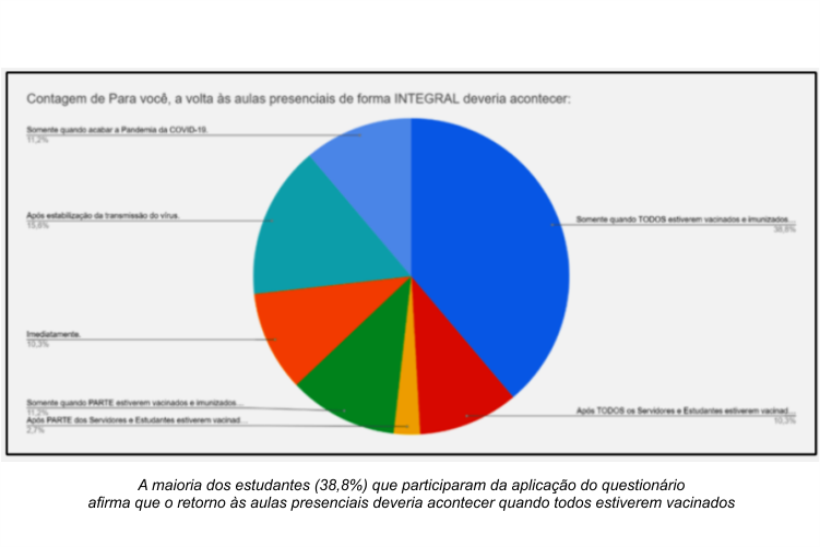 O diretor-geral esclareceu que será necessária a apresentação do comprovante de vacinação quando as atividades presenciais se iniciarem. A comunidade externa também deverá apresentá-lo para acessar o Câmpus. Segundo ele, a Procuradoria Federal no IFG já está sendo consultada e deve emitir parecer em breve sobre isso.