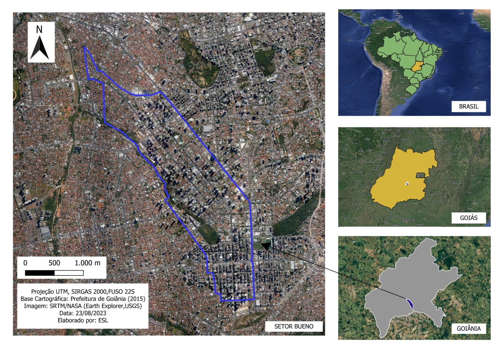 Área do Setor Bueno em relação à Goiânia, Goiás e ao Brasil