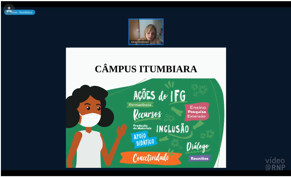 Durante a reunião, a diretora-geral do Câmpus Itumbiara, Aline Silva Barroso, afirmou que recentemente a Unidade recebeu os insumos necessários para iniciar a produção de álcool e gel, que o Câmpus está participando do projeto de confecção de máscaras de tecido, que em breve irá realizar a doação de cestas básicas para família e situação de vulnerabilidade social; e revelou também que o Câmpus realizará um parceria com a ONG Engenheiros Sem Fronteiras para a produção de máscaras para a comunidade surda, e que permitem a leitura labial.