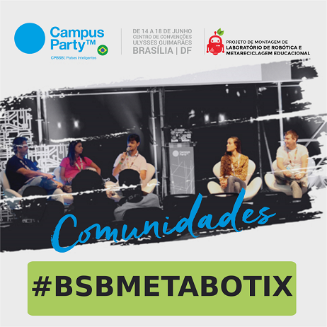 O grupo de Robótica Metabotix, do Câmpus Luziânia, firmou parceria com a organização da Campus Party Brasília (CPBSB) para que a comunidade adquira ingressos com desconto. O evento será realizado de 14 a 18 de junho, em Brasília.