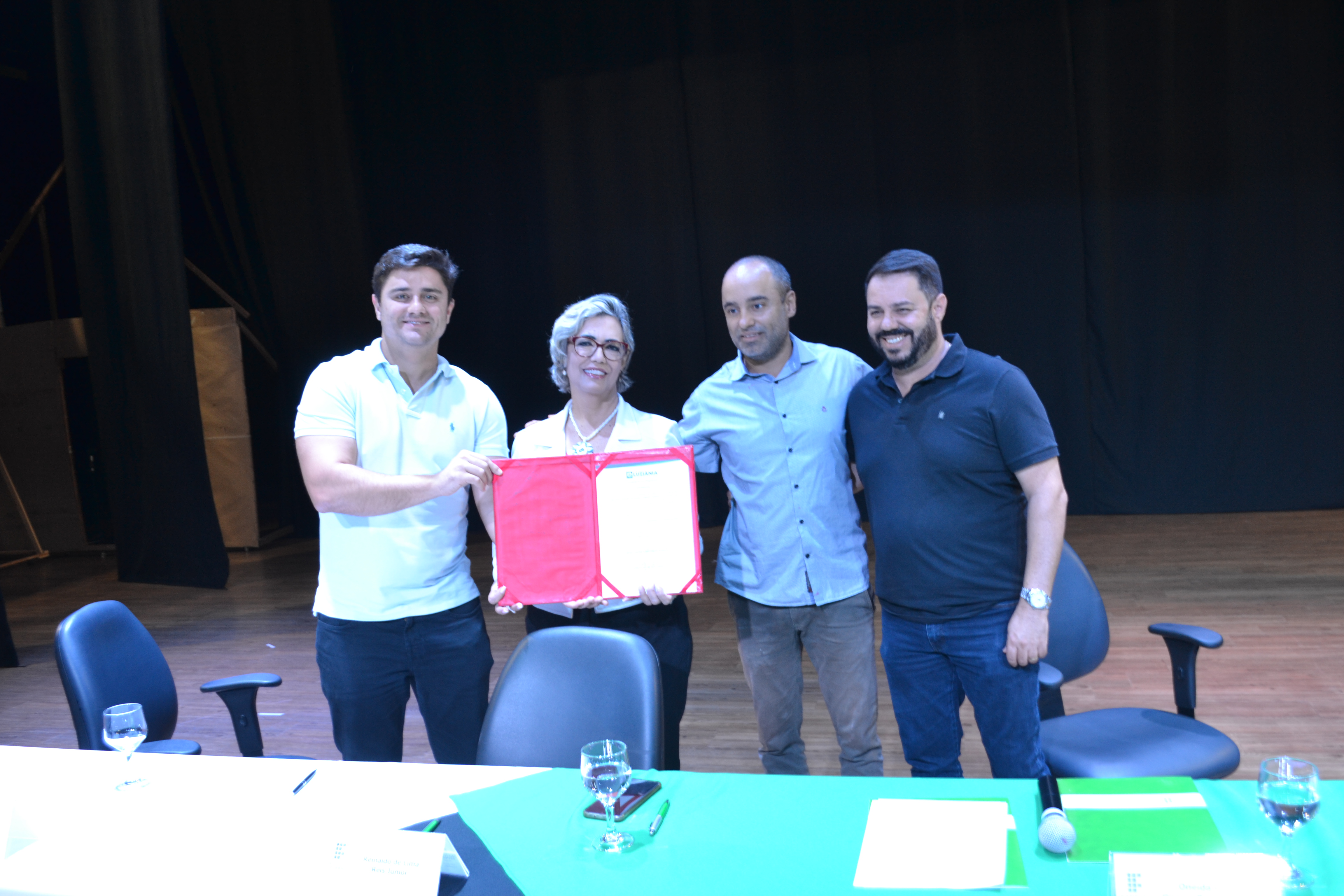 A cerimônia de assinatura do Termo de Compromisso entre os estudantes, IFG e Prefeito Municipal foi realizada ontem, 11, no auditório do Câmpus Luziânia. Além dos estudantes do ensino médio, estiveram presentes a reitora do Instituto Federal de Goiás, professora Oneida Irigon; o diretor-geral do Câmpus Luziânia, professor Reinaldo Reis; a gerente de Pesquisa, Pós-Graduação e Extensão, professora Simone Paixão; o prefeito de Luziânia, Diego Sorgatto; e o secretário municipal de Administração, Elias Cavalcante.