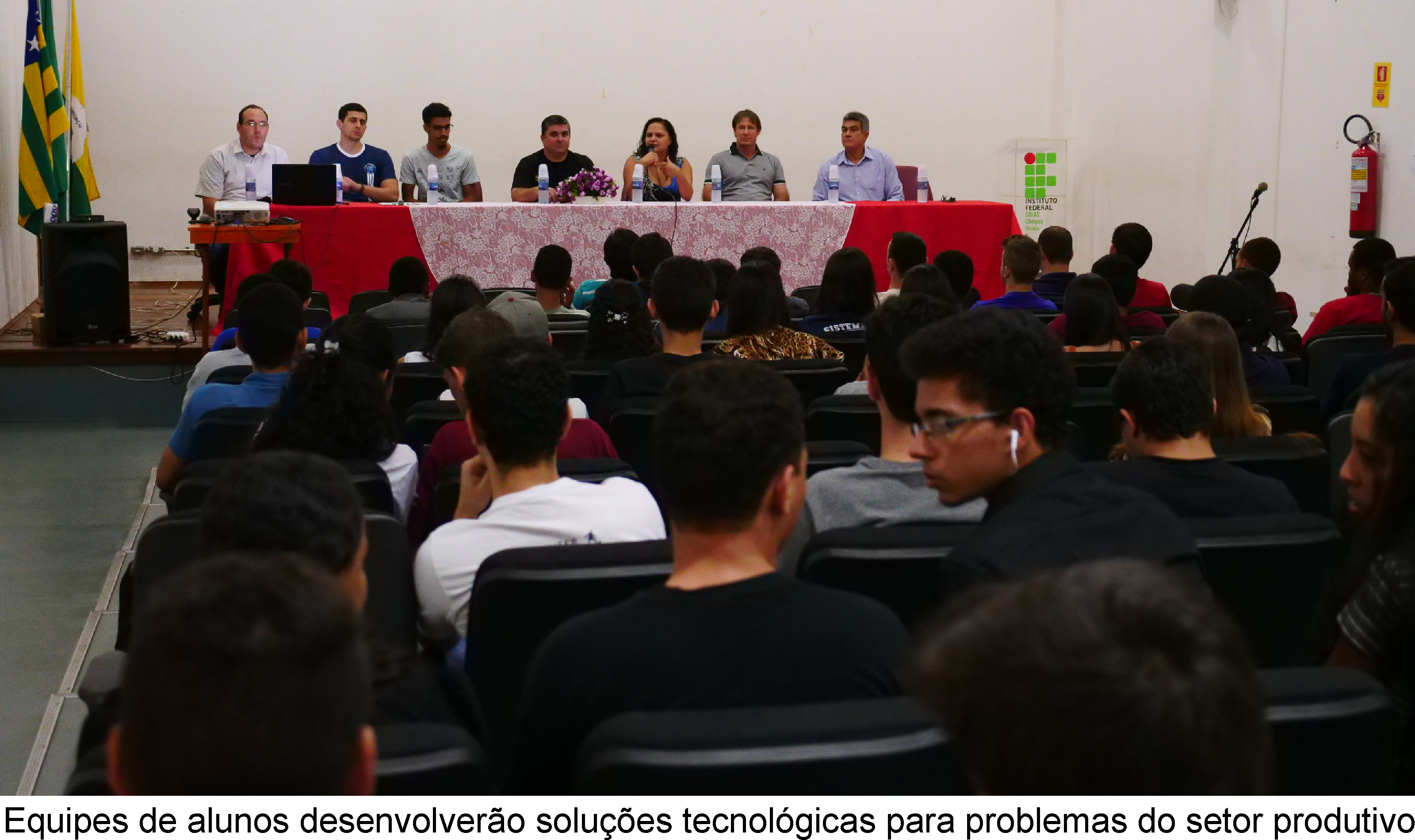 Alunos do Curso Técnico em Informática e do superior em Análise e Desenvolvimento de Sistemas poderão formar equipes de três integrantes para desenvolver soluções para os problemas encontrados no setor produtivo de Uruaçu. Durante a cerimônia, o presidente da ACIAU delimitou o escopo dos projetos em três eixos - soluções de estoque, controle de gastos e em e-commerce.