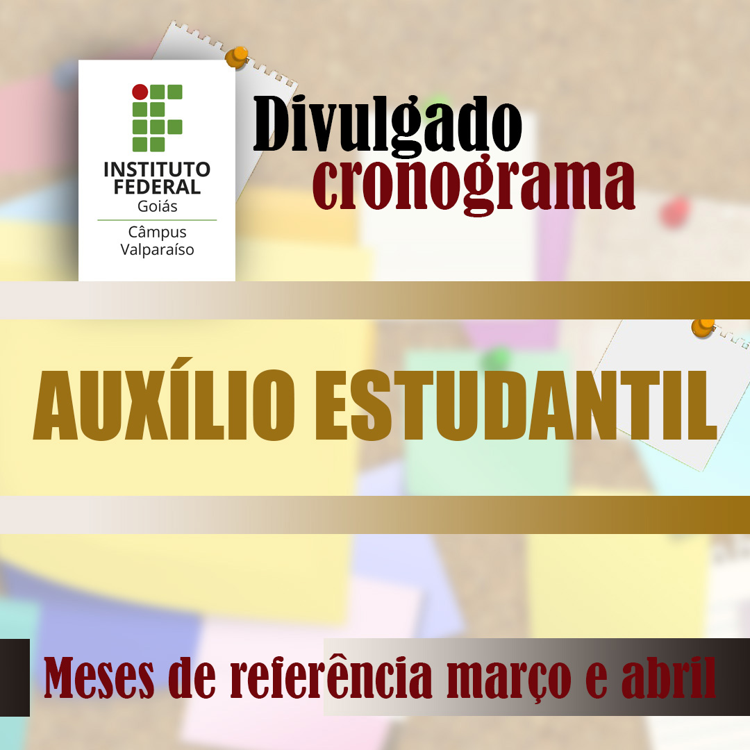 Alunos do IFG Câmpus Valparaíso, os auxílios estudantis referentes aos meses de março e abril estarão disponíveis no período de 11 a 15 de maio. Para os estudantes que recebem por meio de conta bancária, o benefício será disponibilizado a partir do dia 11 de maio, diretamente na conta cadastrada. Para aqueles que recebem por meio de CPF (saque bancário), deverão ir à agência do Banco do Brasil, de acordo com a escala montada com base em lista de ordem alfabética.