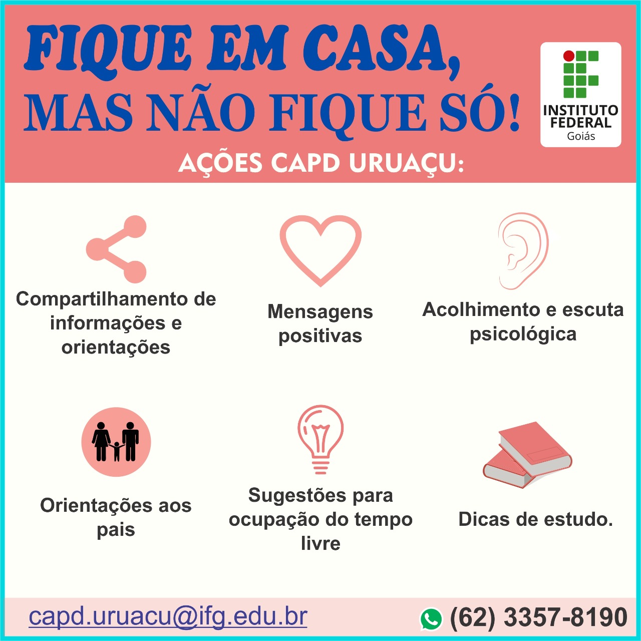 - Envio de mensagens positivas e de saúde mental pelas redes sociais oficiais do IFG Uruaçu.