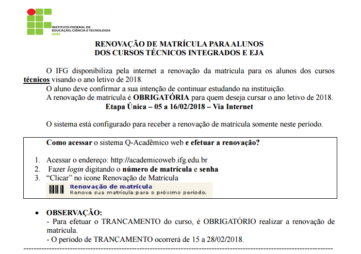Veja aqui as orientações para renovação de matrícula dos cursos técnicos.