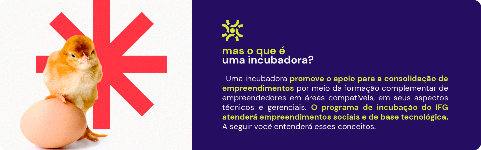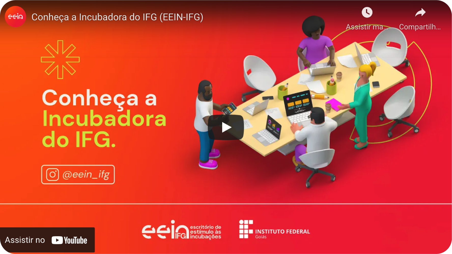Você sabia que o Instituto Federal de Goiás através do EEIn-IFG, visa apoiar a geração e consolidação de empreendimentos de cunho social e de base tecnológica inovadora? Já ouviu falar em Incubadoras? Caso ainda não saiba ou queira saber mais, você pode começar assistindo o vídeo abaixo.
