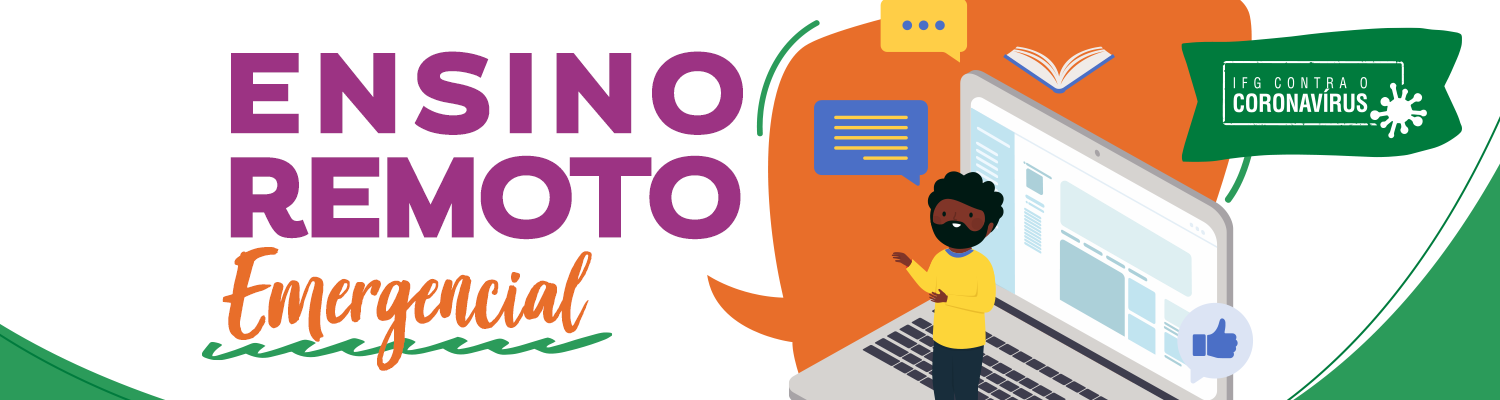 O Ensino Remoto Emergencial é o conjunto de procedimentos didático-pedagógicos adotado pelo Instituto Federal de Educação, Ciência e Tecnologia de Goiás - IFG, conforme Resolução 20/2020 - REI/CONSUP/REITORIA/IFG, de 30 de junho de 2020, para o desenvolvimento das ações do ensino mediadas ou não por tecnologias digitais da informação e comunicação. No Ensino Remoto Emergencial o(a) professor(a) desenvolverá os conteúdos da disciplina por meio de atividades síncronas – aquelas que possibilitam a interação entre professor e estudantes em tempo real – e assíncronas – aquelas que os estudantes poderão realizar a qualquer tempo.