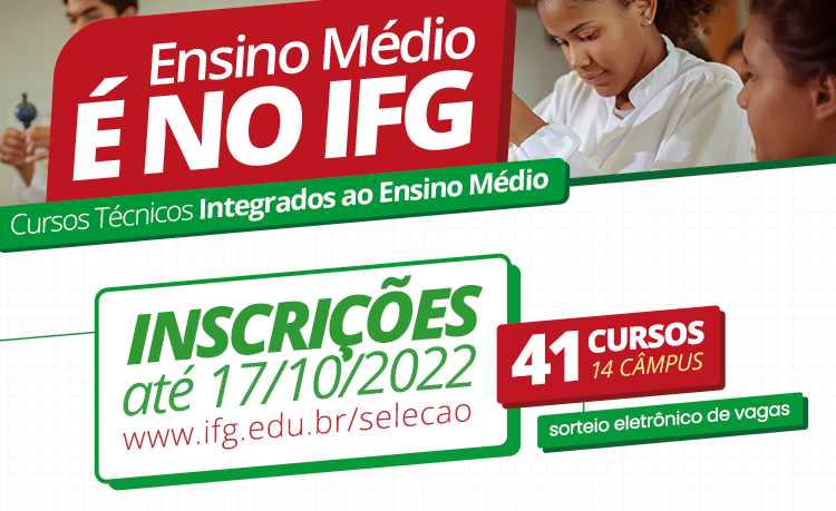 O Instituto Federal de Goiás (IFG) abriu nesta sexta-feira, 2, as inscrições para o processo seletivo para ingresso nos cursos técnicos integrados ao ensino médio, em 2023. São ofertadas 1.254 vagas, em 41 cursos, nos 14 câmpus da Instituição.