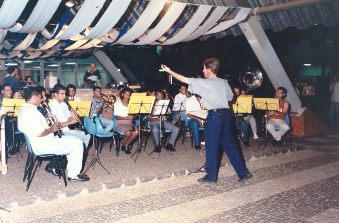 Banda Nilo Peçanha regida pelo professor Marshal Gaioso, na década de 90, em apresentação no pátio do Câmpus Goiânia