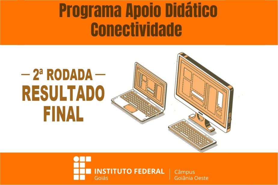 A Direção-Geral e a Gerência de Pesquisa, Pós-graduação e Extensão (GEPEX), por meio da Coordenação de Assistência Estudantil (CAE) do Câmpus Goiânia Oeste do IFG, divulgaram hoje, dia 25, o resultado final das inscrições da segunda etapa de seleção do Programa Apoio Didático Conectividade – Edital Nº 003/Câmpus Goiânia Oeste/IFG/2020 – destinado a disponibilizar o empréstimo de equipamentos de informática para alunos excepcionalmente durante o Ensino Remoto Emergencial, em decorrência da situação de pandemia da COVID-19.