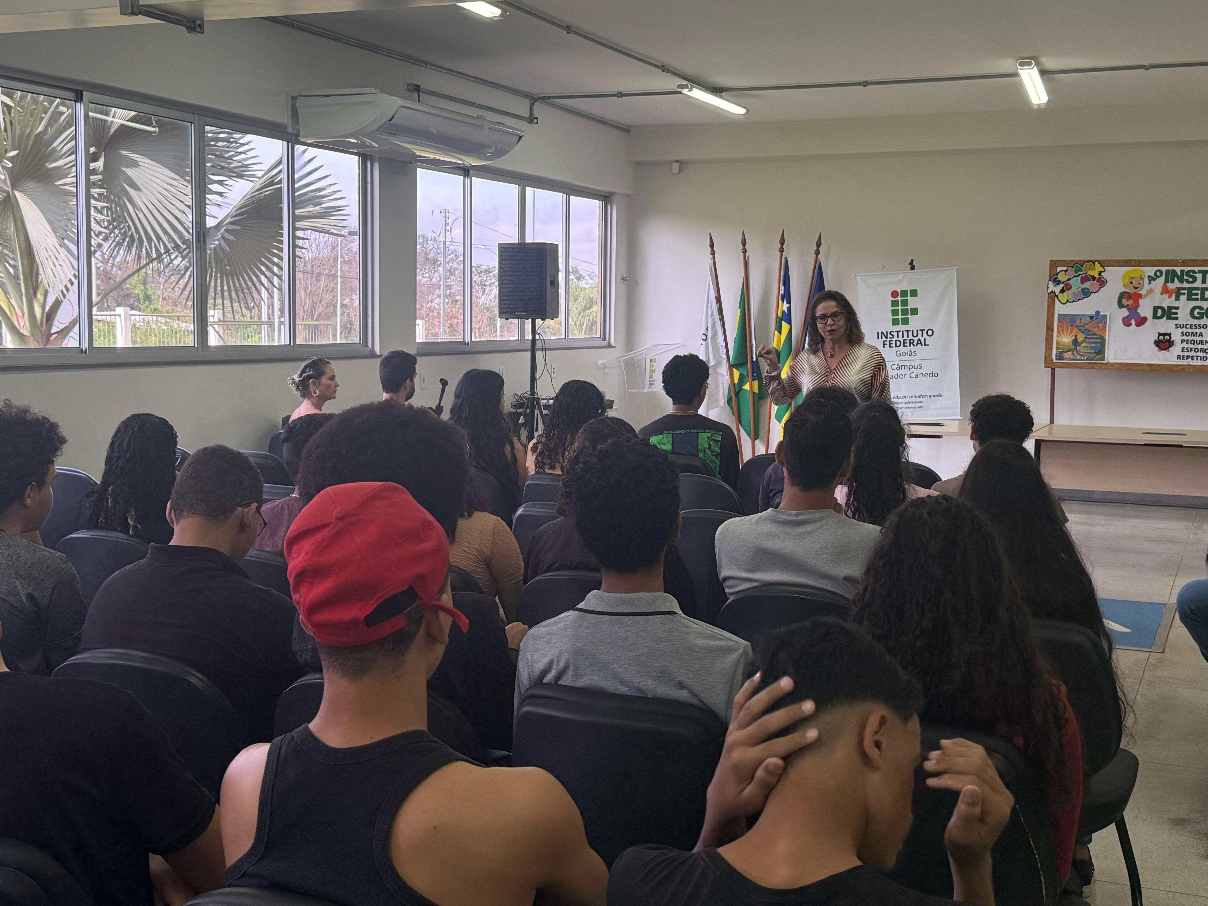 A Diretora-Geral do Câmpus, professora Maria Betânia Gondim da Costa, parabenizou os alunos pela aprovação no processo seletivo e destacou que o IFG pertence aos discentes. “Nós estamos aqui, nesta instituição pública, gratuita e de qualidade em razão de vocês. Sintam-se em casa. Tudo isso aqui é de vocês”, disse.