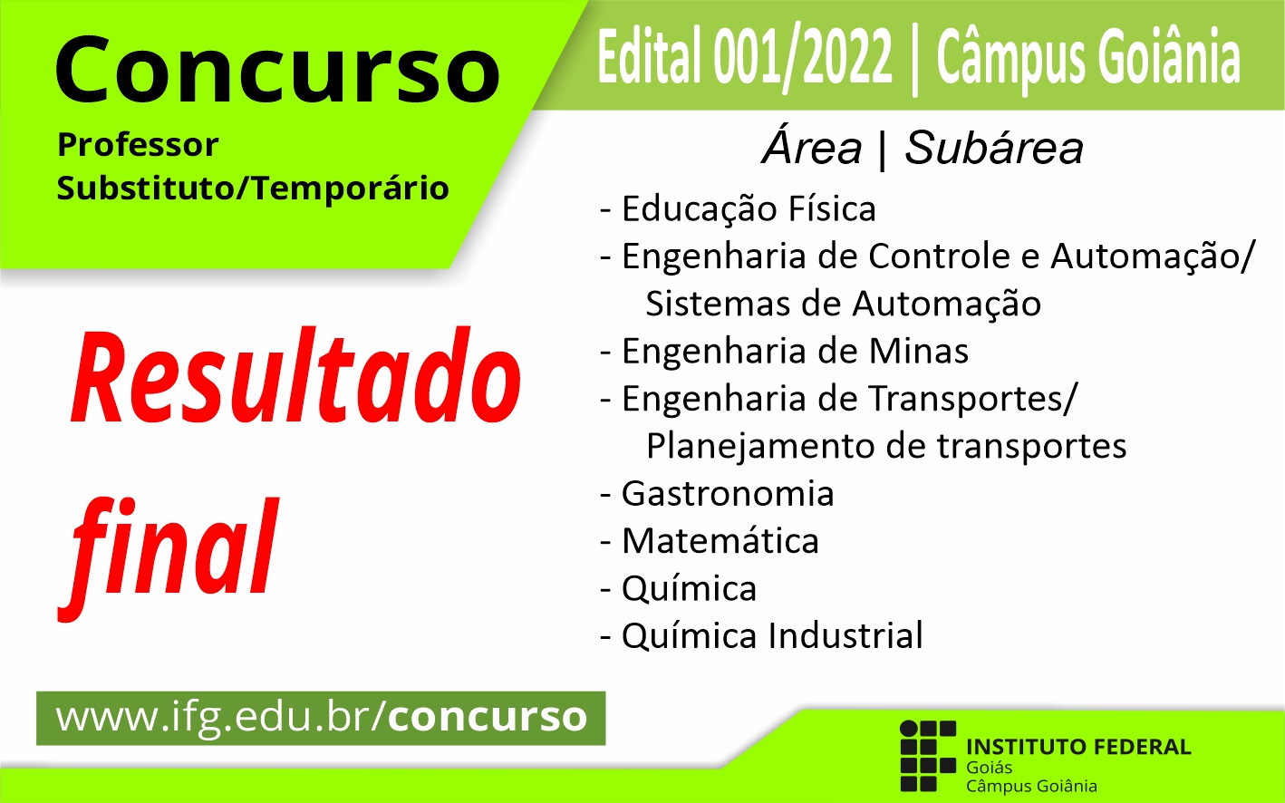 Certame ofertou 8 vagas para docentes em diversas áreas de atuação no Câmpus Goiânia