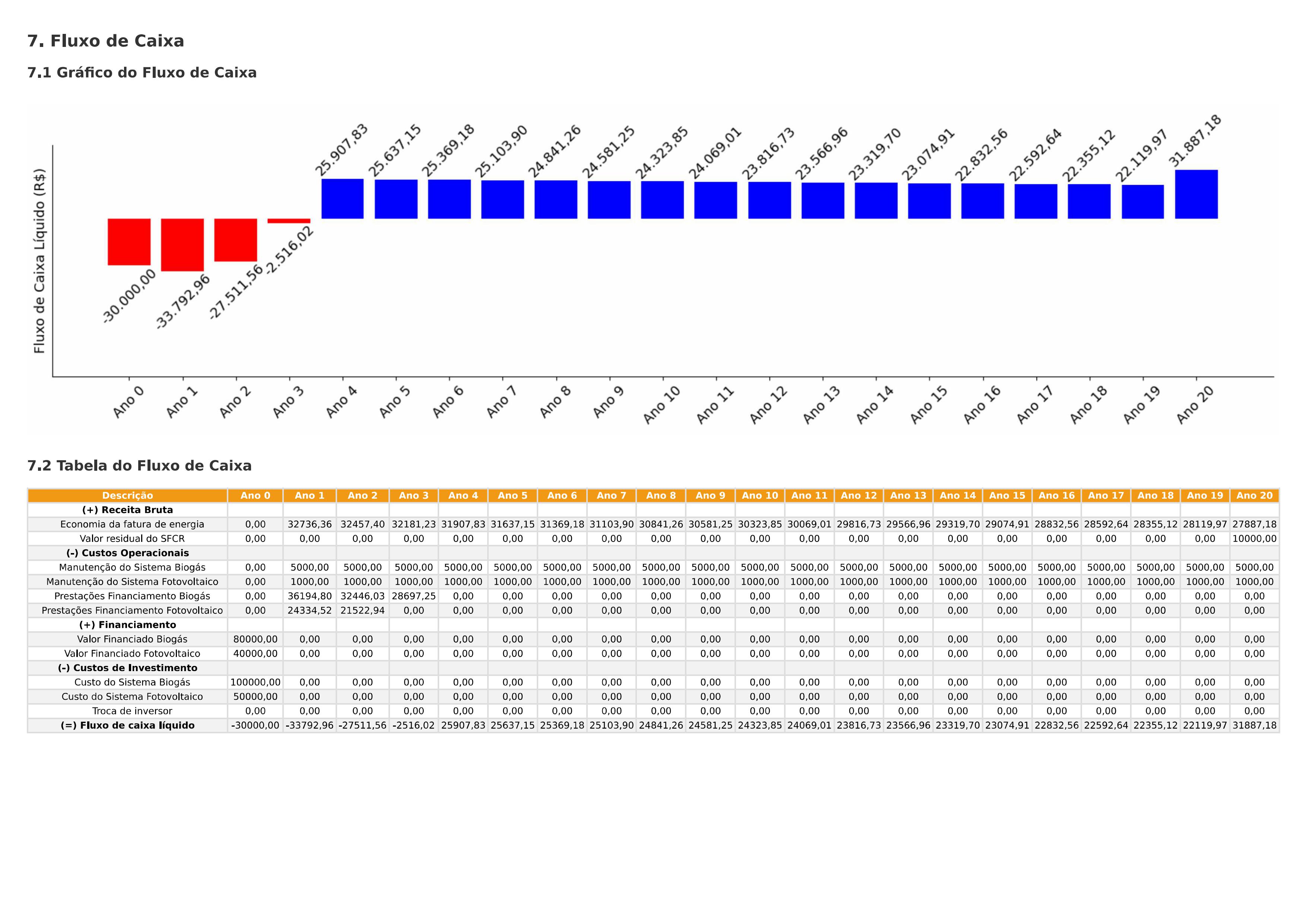 Exemplo de parte dos resultados de fluxo de caixa apresentado pela ferramenta SuinoPower em uma simulação para uma suinocultura em Goiânia (GO).