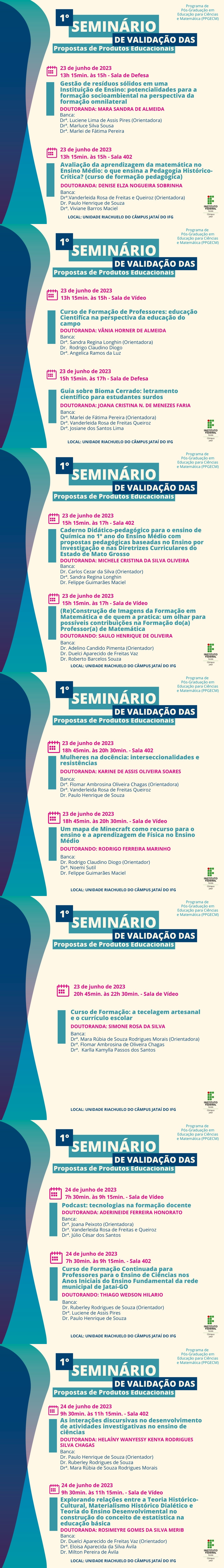 Programação do 1º Seminário de Validação das Propostas de Produtos Educacionais