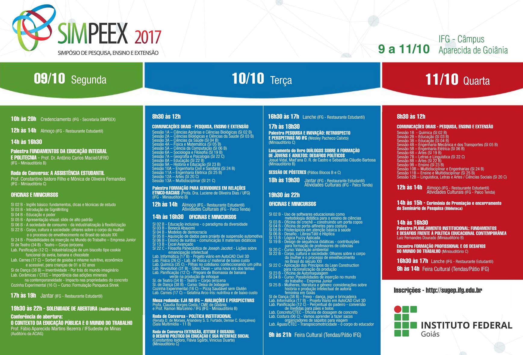 Em 2017 o SIMPEEX foi realizado no Câmpus Aparecida de Goiânia entre os dias 9 e 11 de outubro e no Câmpus Senador Canedo entre os dias 23 e 28 de outubro.