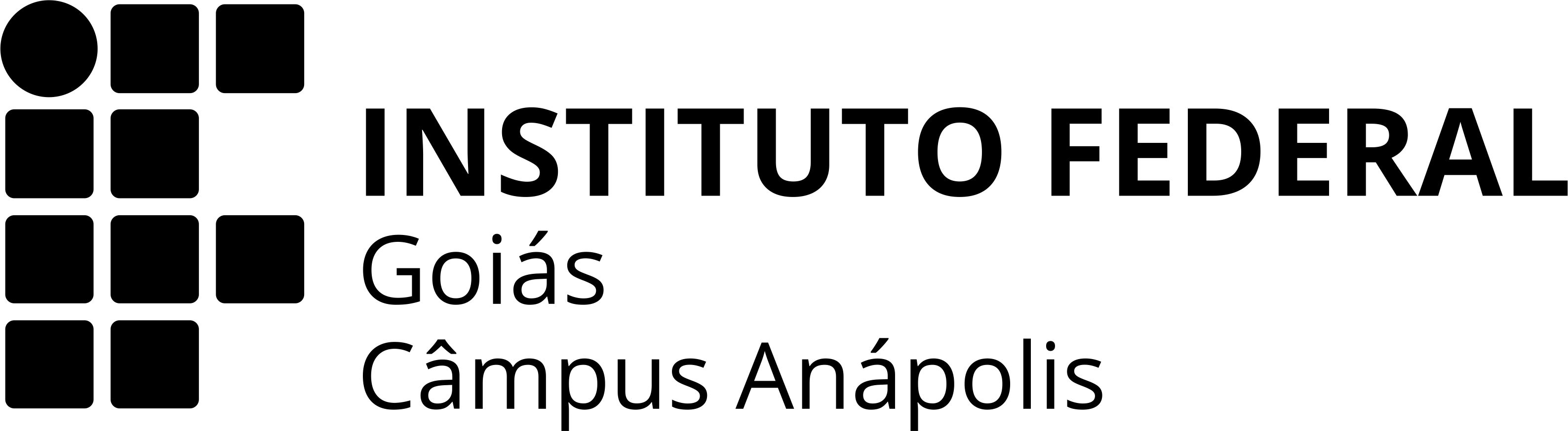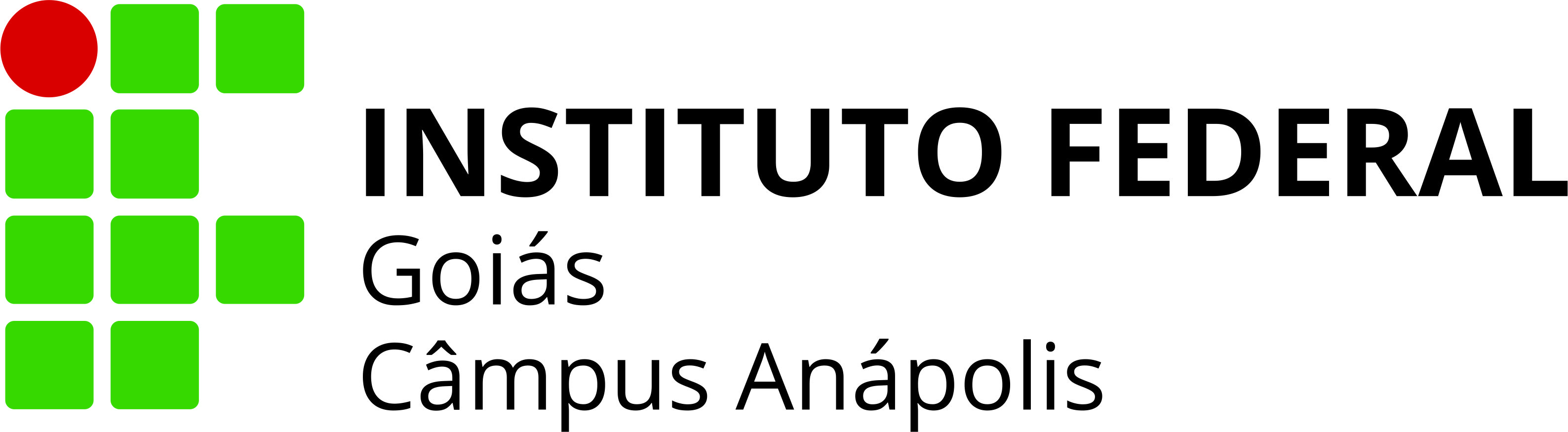Nesta seção é possível baixar as marcas específicas do Câmpus Anápolis, bem como ter acesso às marcas gerais do Instituto Federal de Goiás (IFG) e marcas do Governo Federal. Para aplicação das marcas, é preciso atentar-se ao "Manual de Uso da Marca do IFG" (última versão - 2015). As marcas são apresentadas nas versões resumida (Instituto Federal de Goias) ou completa (Instituto Federal de Educação, Ciência e Tecnologia de Goiás). Acesse abaixo as marcas do IFG-Câmpus Anápolis: