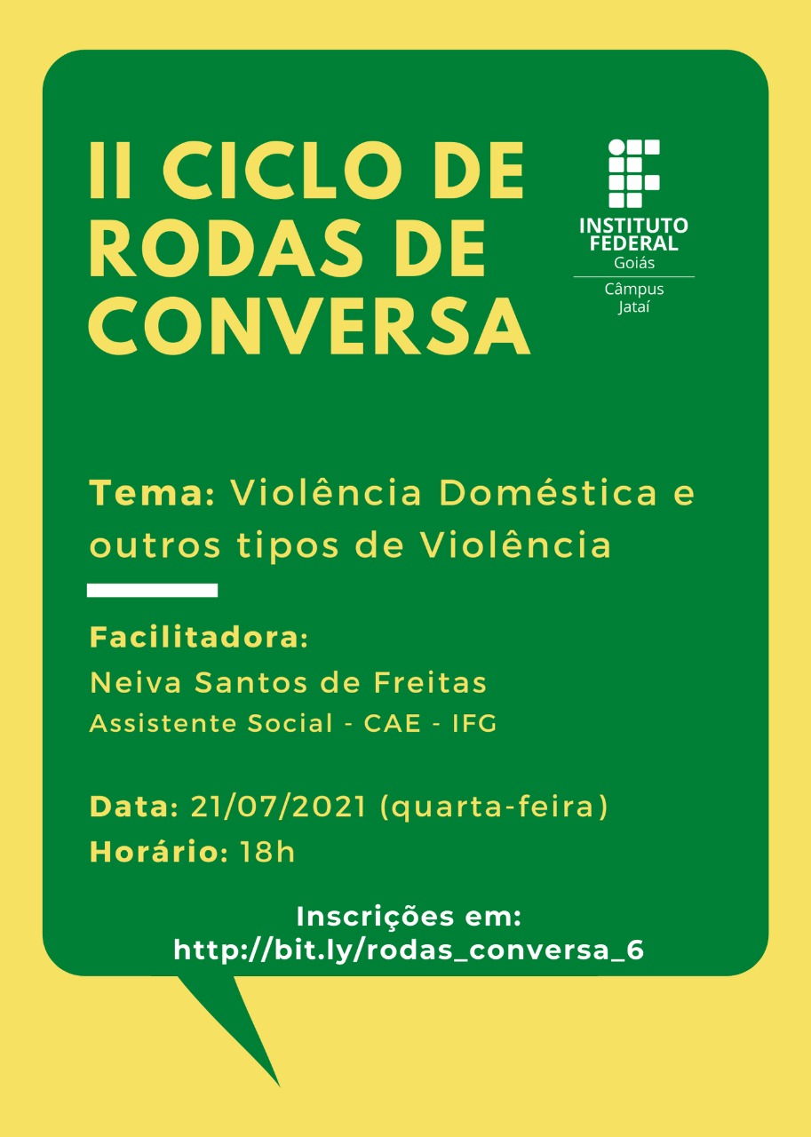 II Ciclo de Rodas de Conversa - 21 de julho - 18h - Tema violência doméstica e outros tipos de violência;