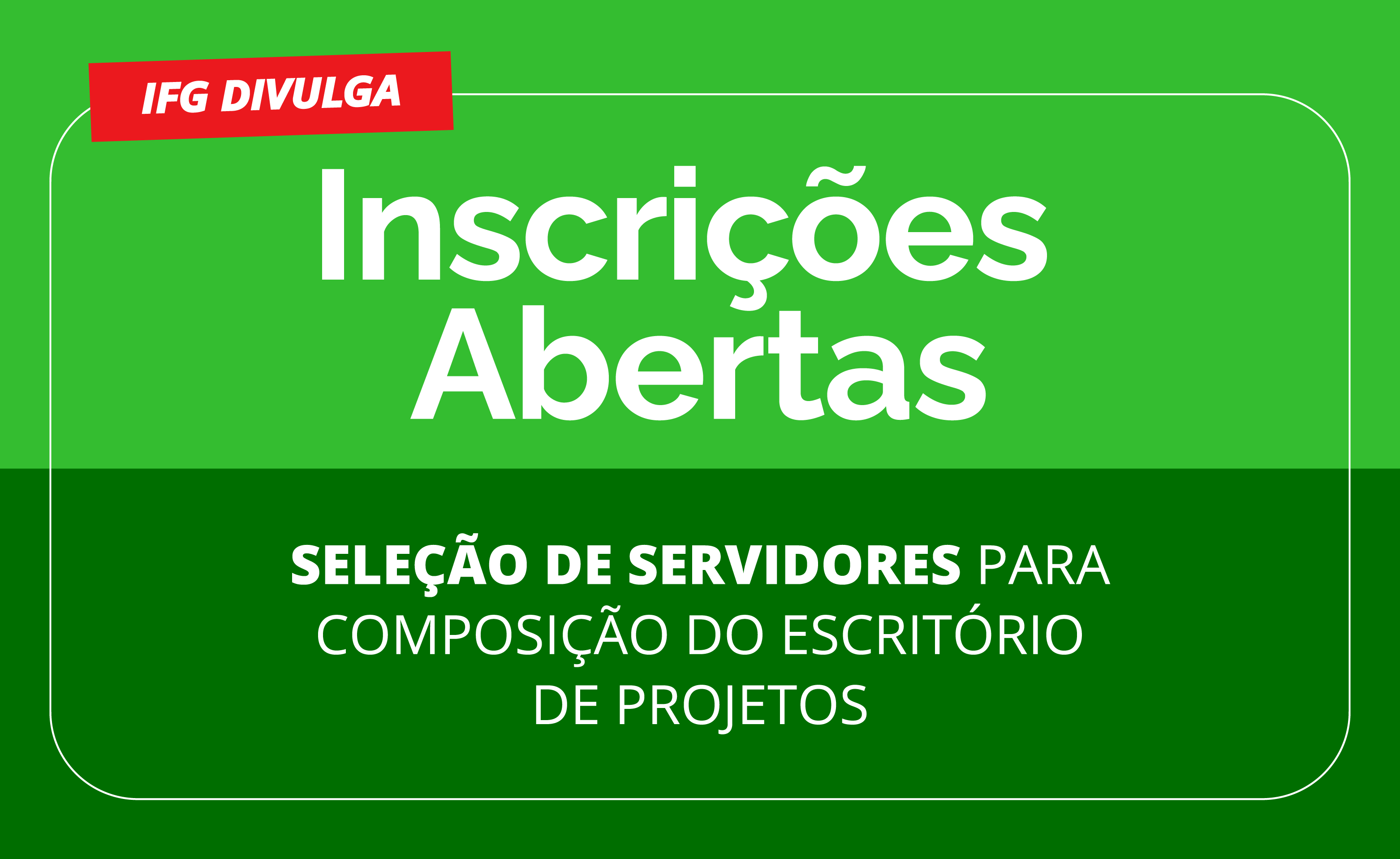 O Instituto Federal de Goiás (IFG), por meio da Pró-Reitoria de Administração (Proad), está com inscrições abertas para a seleção de servidores efetivos para a composição da equipe do Escritório de Projetos do IFG. Podem participar da seleção servidores efetivos do quadro docente ou técnico-administrativo com formação na área de engenharia e/ou arquitetura. A inscrição será feita em fluxo contínuo por meio de formulário. O processo seletivo será feito mediante análise curricular dos candidatos e entrevista.