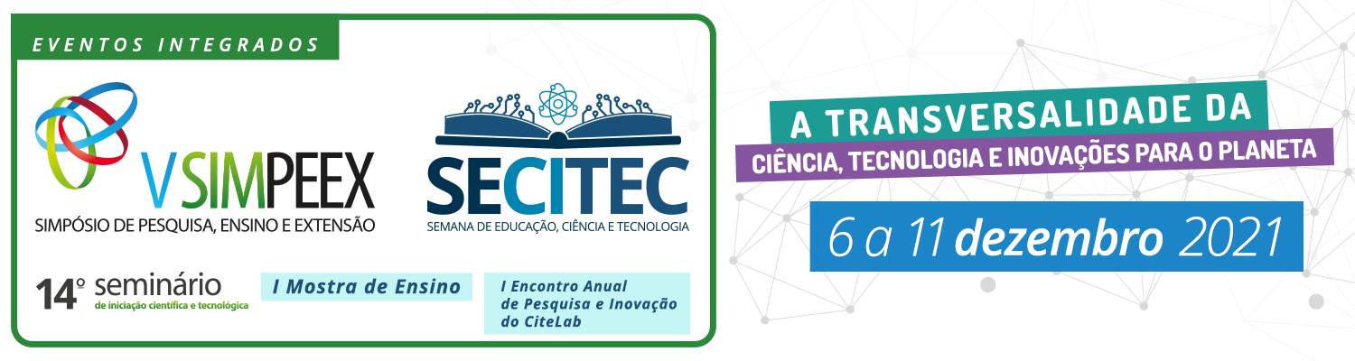 Durante os dias 06 a 11 de dezembro, aconteceu o V Simpósio de Ensino, Pesquisa e Extensão (V SIMPEEX) e SECITEC, com a temática “A Transversalidade da Ciência, Tecnologia e Inovações para o Planeta”. Outros eventos foram incorporados, como o 14º Seminário de Iniciação Científica e Tecnológica, a I Mostra de Ensino e o I Encontro Anual de Pesquisa e Inovação do Citelab.