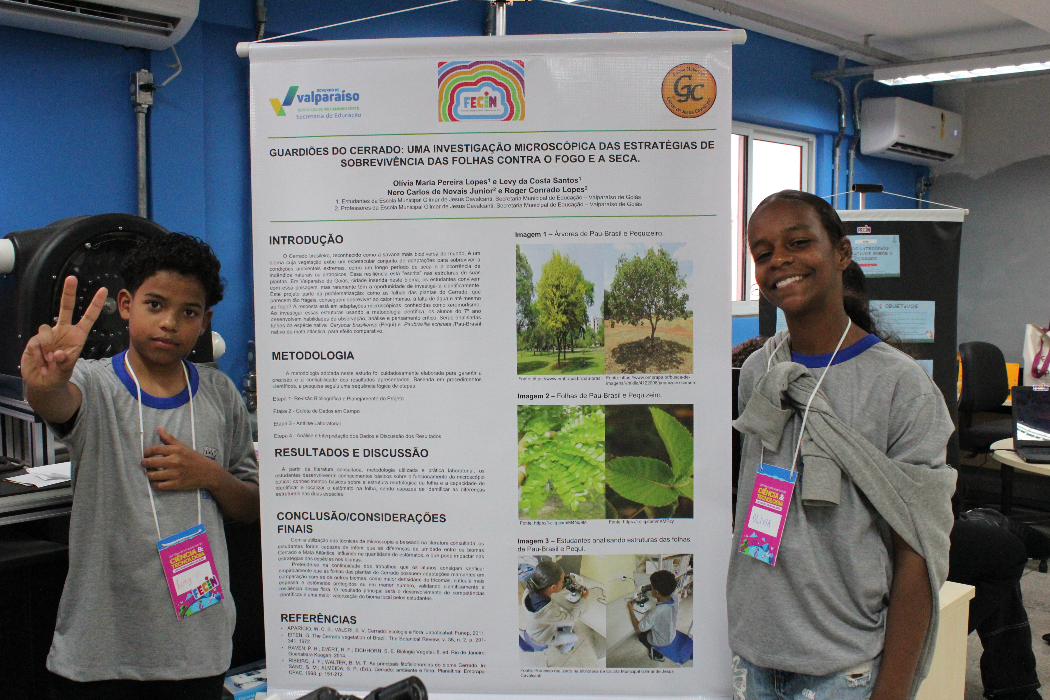 Intitulado “Guardiões do Cerrado: uma investigação microscópica das estratégias de sobrevivência das folhas contra o fogo e a seca”, o trabalho apresentado na Fecin por Levy e também pela estudante Olívia Pereira foi orientado pelo professor Nero Carlos de Novaes Junior e coorientado pelo professor Roger Conrado. Nero conta que “esta é uma oportunidade muito rica e importante para os estudantes”.