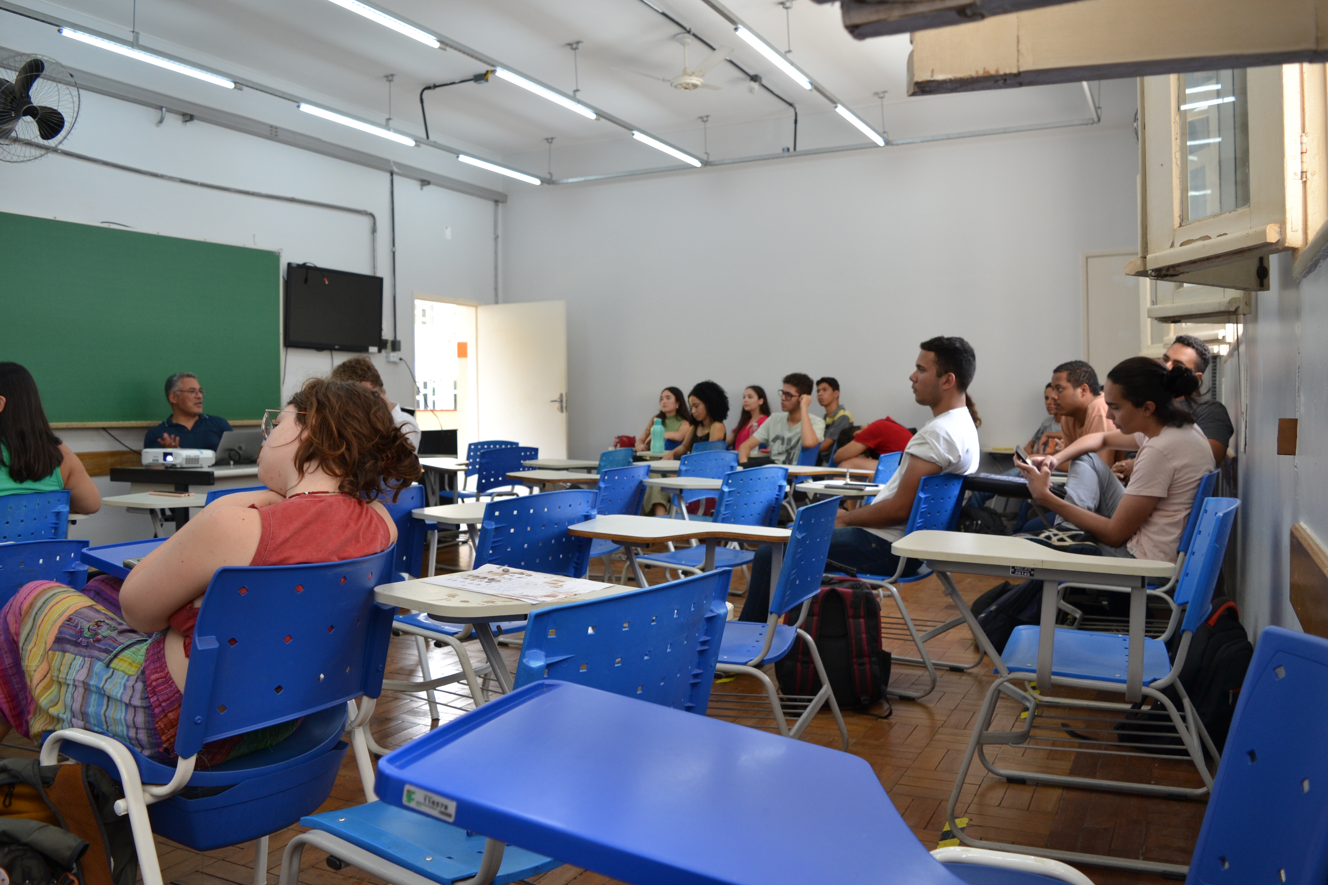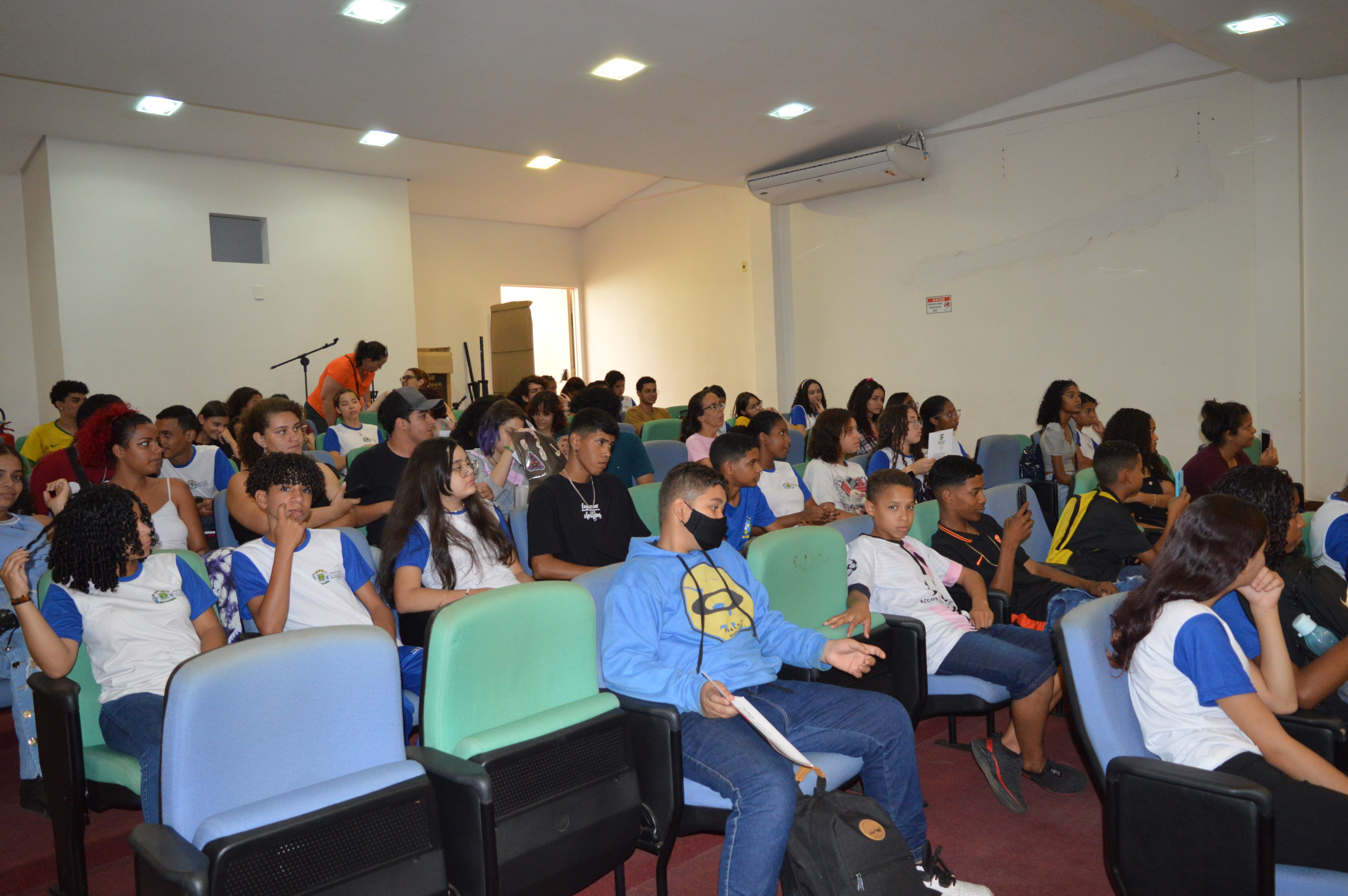 Estudantes participantes do projeto Conhecendo o IFG e alunos dos cursos técnicos integrados ao ensino médio do Câmpus Goiânia participaram da palestra