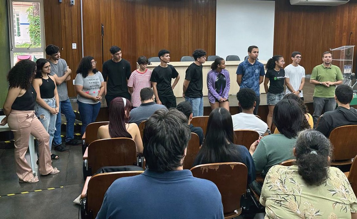 Na manhã desta sexta-feira, estudantes e servidores participaram de um momento de reconhecimento no Auditório Demartin Bizerra. O diretor-geral do Câmpus Goiânia, professor Vinícius Carvalhaes, destacou o papel das atividades acadêmicas e de pesquisa no desempenho alcançado: “Eu acho que é importante os demais estudantes, que não participaram desse momento da olimpíada e que estão presenciando a trajetória dos colegas, verem a importância do apoio ao ensino e as possibilidades que a gente tem dentro da instituição, e poder aproveitar isso. Quando a gente fala do ensino, não é somente a sala de aula”, lembrou.