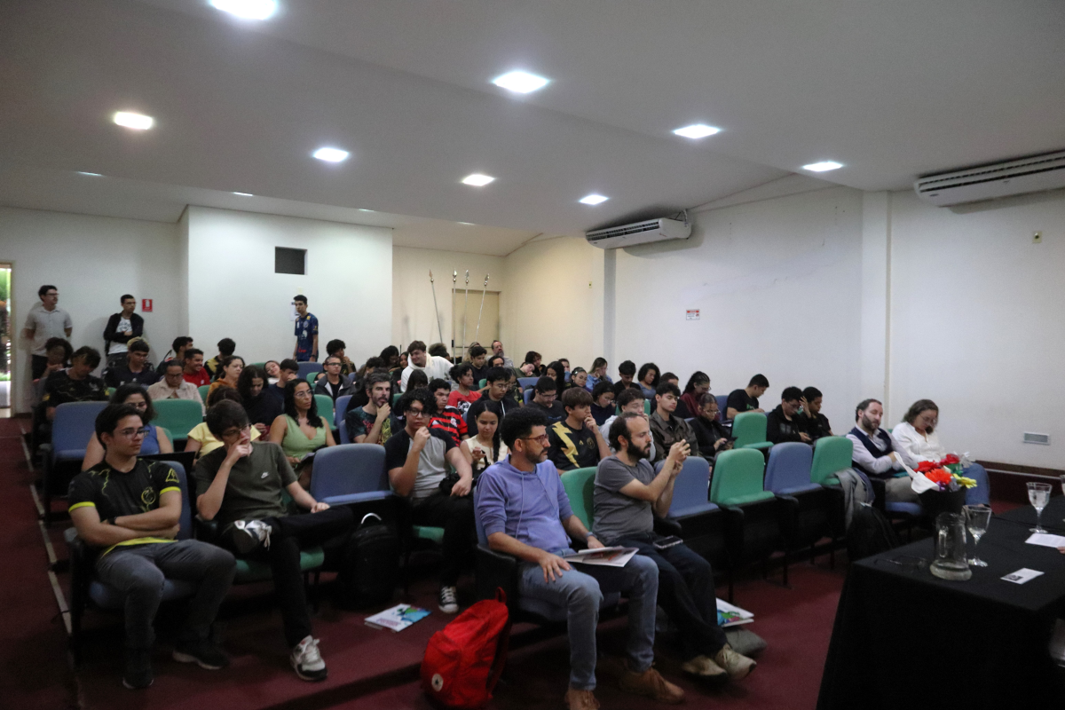A abertura do evento contou com apresentação musical do Professor Felipe Valoz junto ao cantor Chico Aafa, que interpretaram músicas de Elomar. Em seguida, o público pôde conferir a palestra “A Ética das Explicações: lições da IA Médica para um mundo em colapso”, ministrada pelo Prof. Dr. Steven S. Gouveia, da Universidade do Porto (Portugal). O professor convidado provocou reflexões a respeito da ética na era da Inteligência Artificial. “Eu penso que a inteligência artificial está a reformular algumas noções que nós temos, por exemplo, de responsabilidade. Por isso eu acho que é o momento de repensar esses conceitos, de forma que possamos, por um lado, abranger e incorporar a inteligência artificial nos nossos sistemas éticos, na nossa avaliação ética, e por outro, para evitar uma desresponsabilização da inteligência artificial em muitas áreas da sociedade, como, por exemplo, a medicina, ou como é o impacto ecológico da Inteligência Artificial, ou até os problemas de ansiedade que as redes sociais podem criar, entre muito outros”, afirmou Steven.