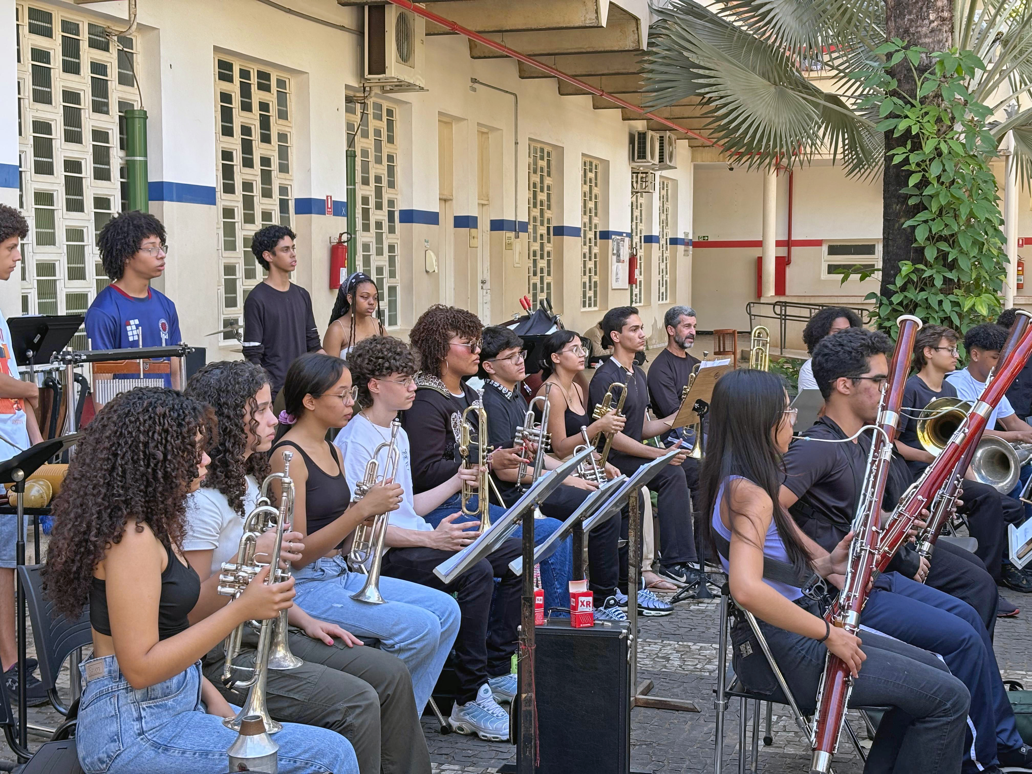 Banda Sinfônica Nilo Peçanha realizou concerto no pátio do Câmpus Goiânia.