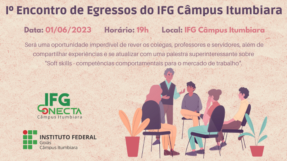 E tem mais! Ainda na programação do Conecta haverá o I Encontro de Egressos do IFG Câmpus Itumbiara. De acordo com os organizadores, o Encontro “será uma oportunidade imperdível de rever os colegas, professores e servidores, além de compartilhar experiências e se atualizar com uma palestra superinteressante sobre ‘Soft skills - competências comportamentais para o mercado de trabalho’”.
