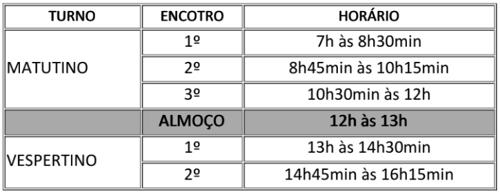 Ressalta-se que entre 16h15 e 18h os alunos poderão permanecer no Câmpus para participarem de plantões com os professores, monitorias, grupos de estudos, projetos de ensino, pesquisa e extensão, atividades de treinamento esportivo, organização e ensaios de atividades artísticas e culturais, orientações com as coordenações, entre outros.