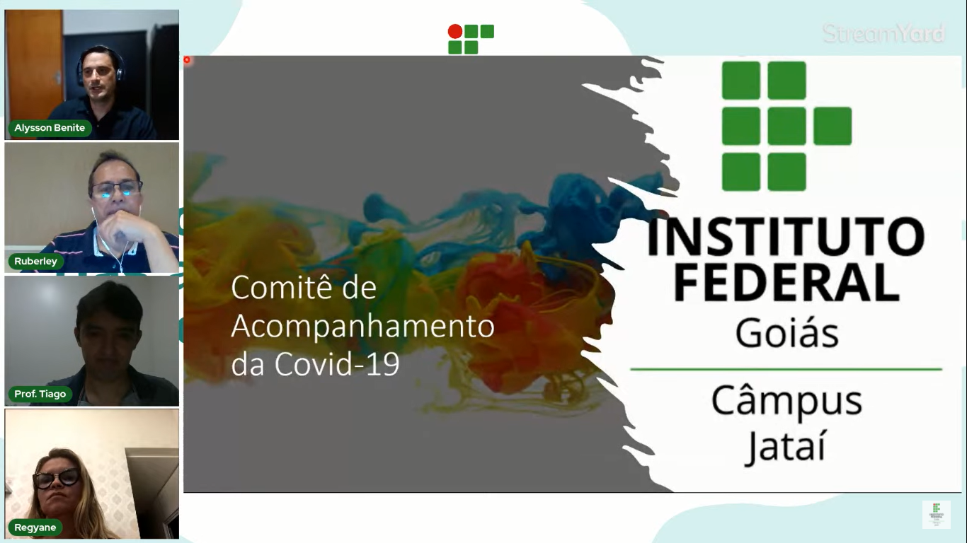 O Câmpus Jataí do Instituto Federal de Goiás (IFG) realizou na noite desta quinta-feira, 9 de dezembro, reunião online para apresentar à comunidade acadêmica os detalhes do Plano Local de Ação para o retorno gradual das atividades presenciais. A atividade foi mediada pelo professor Ruberley Rodrigues de Souza e contou com a participação do comitê local. A reunião ocorreu no canal do câmpus no Youtube e pode ser assistida aqui.