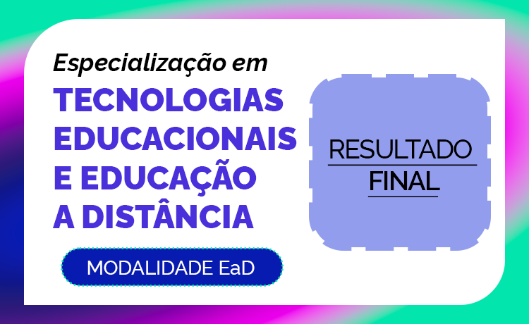 - Acesse o resultado final e outras informações sobre o processo seletivo: EDITAL Nº 04/2024 - SELEÇÃO DE ESTUDANTES PARA O CURSO DE ESPECIALIZAÇÃO EM TECNOLOGIAS EDUCACIONAIS E EDUCAÇÃO A DISTÂNCIA, NA MODALIDADE EaD