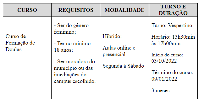 RESULTADO / EDITAL - Curso de Formação de Doulas
