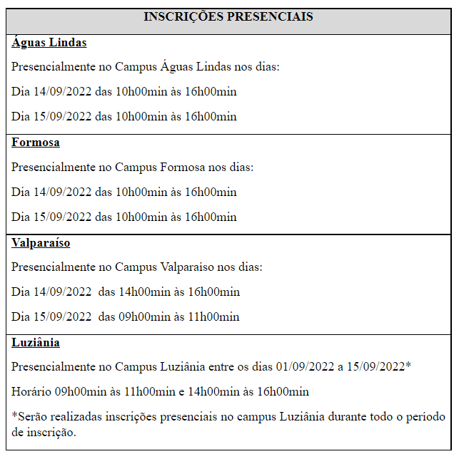 Teremos um período para inscrições presenciais: