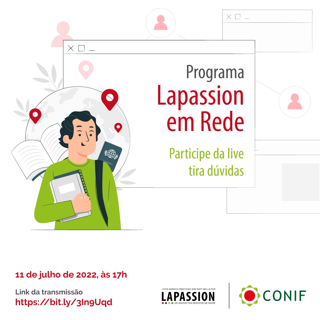 Parte 2: Lapassion em Rede Etapa Itumbiara. Durante 10 semanas (entre setembro e novembro) o IFG receberá alunos de toda a Rede Federal e de Portugal. As 2 primeiras semanas serão presenciais, as 7 seguintes serão remotas e a última presencial novamente. Aproximadamente 60 alunos serão divididos em times e cada time deverá apresentar um produto para um determinado desafio. Cada time terá 1 tutor (preparado na Parte 1). Para esta Parte 2 selecionaremos 14 estudantes do IFG (ao menos 1 de cada câmpus).