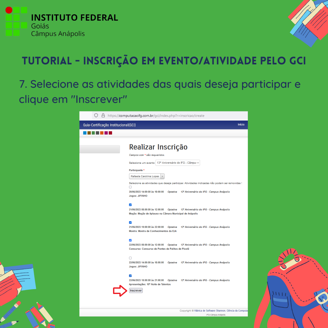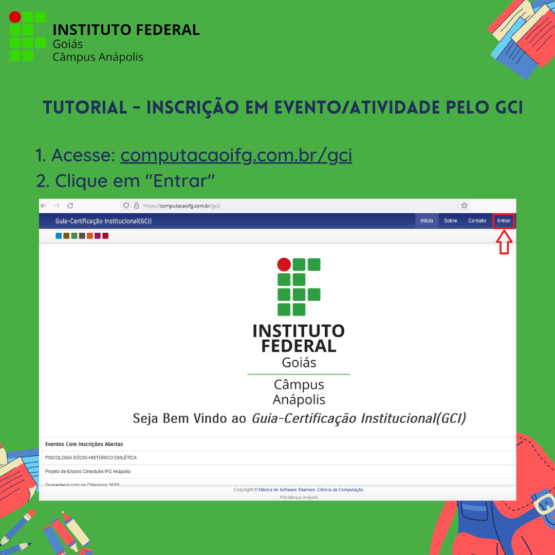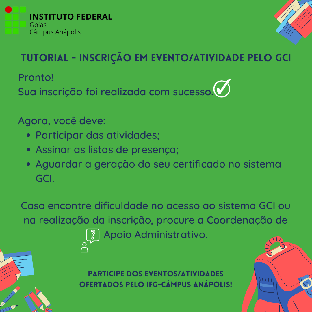 Conheça o GCI - Sistema de inscrições e certificação de eventos do IFG Anápolis: www.computacaoifg.com.br/gci