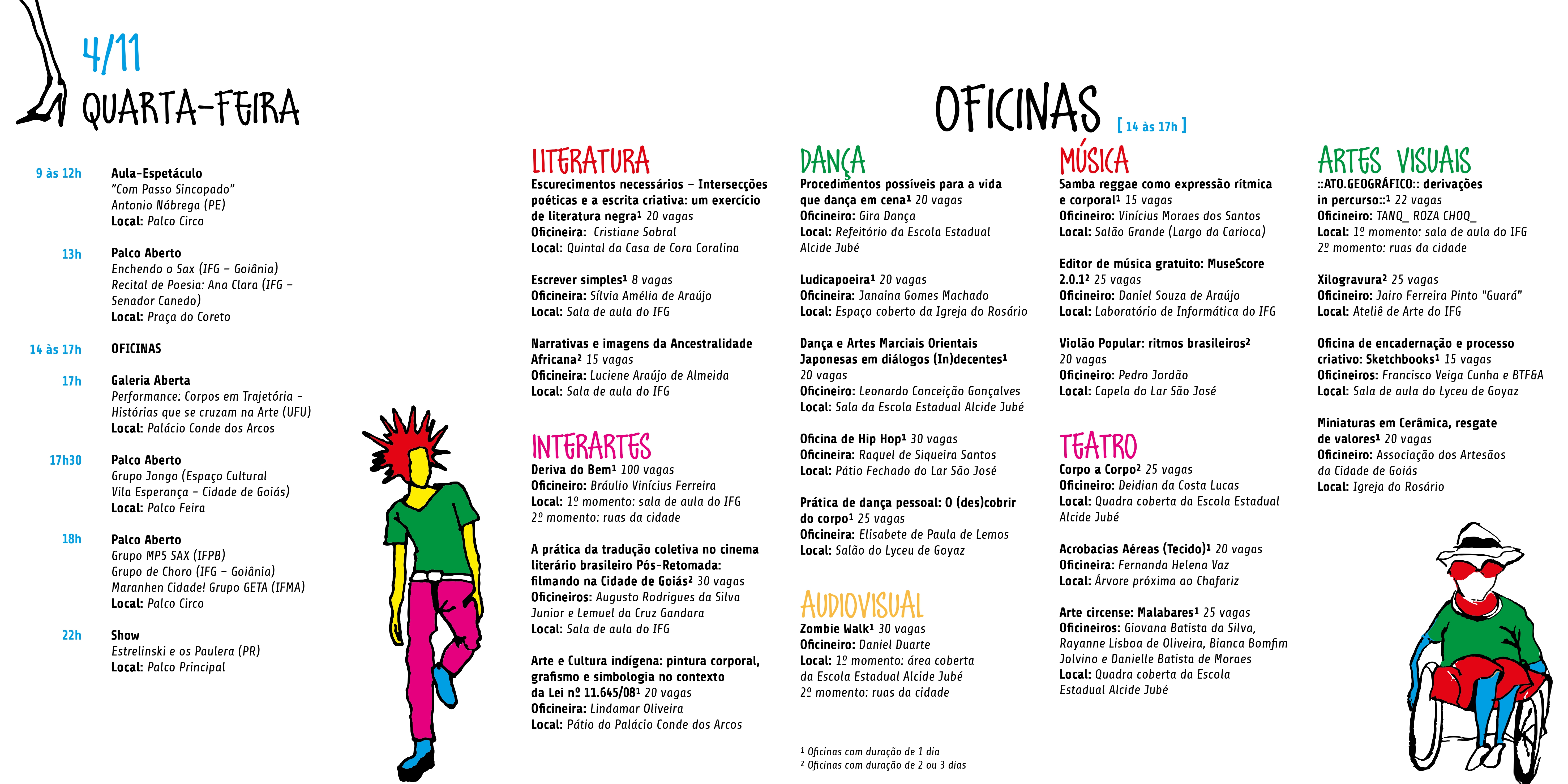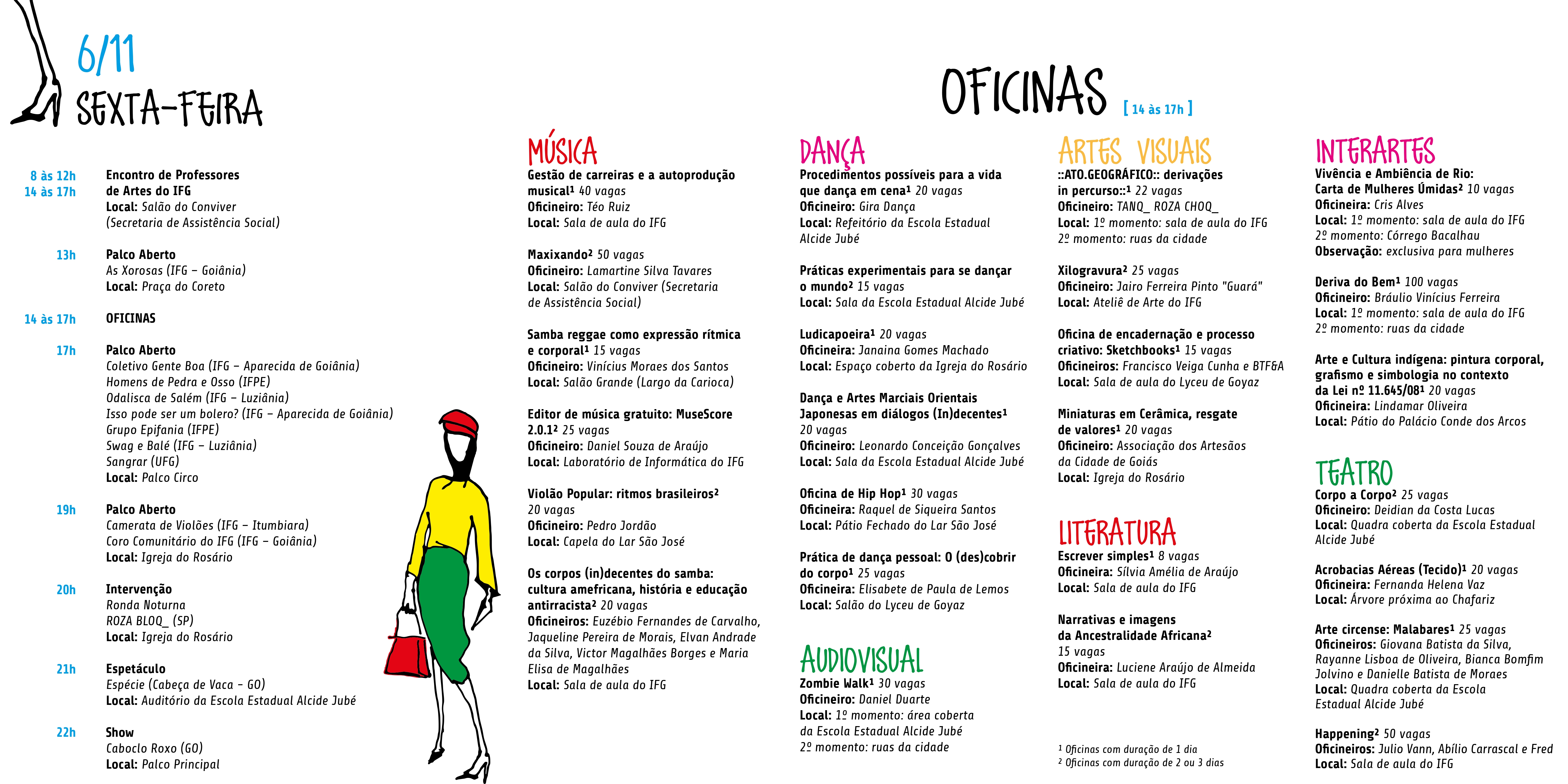 O Festival de Artes de Goiás é um evento que realiza mesas e palestras, comunicações, oficinas e espetáculos durante os dias do evento, tornando possível a participação da comunidade acadêmica e do público externo.