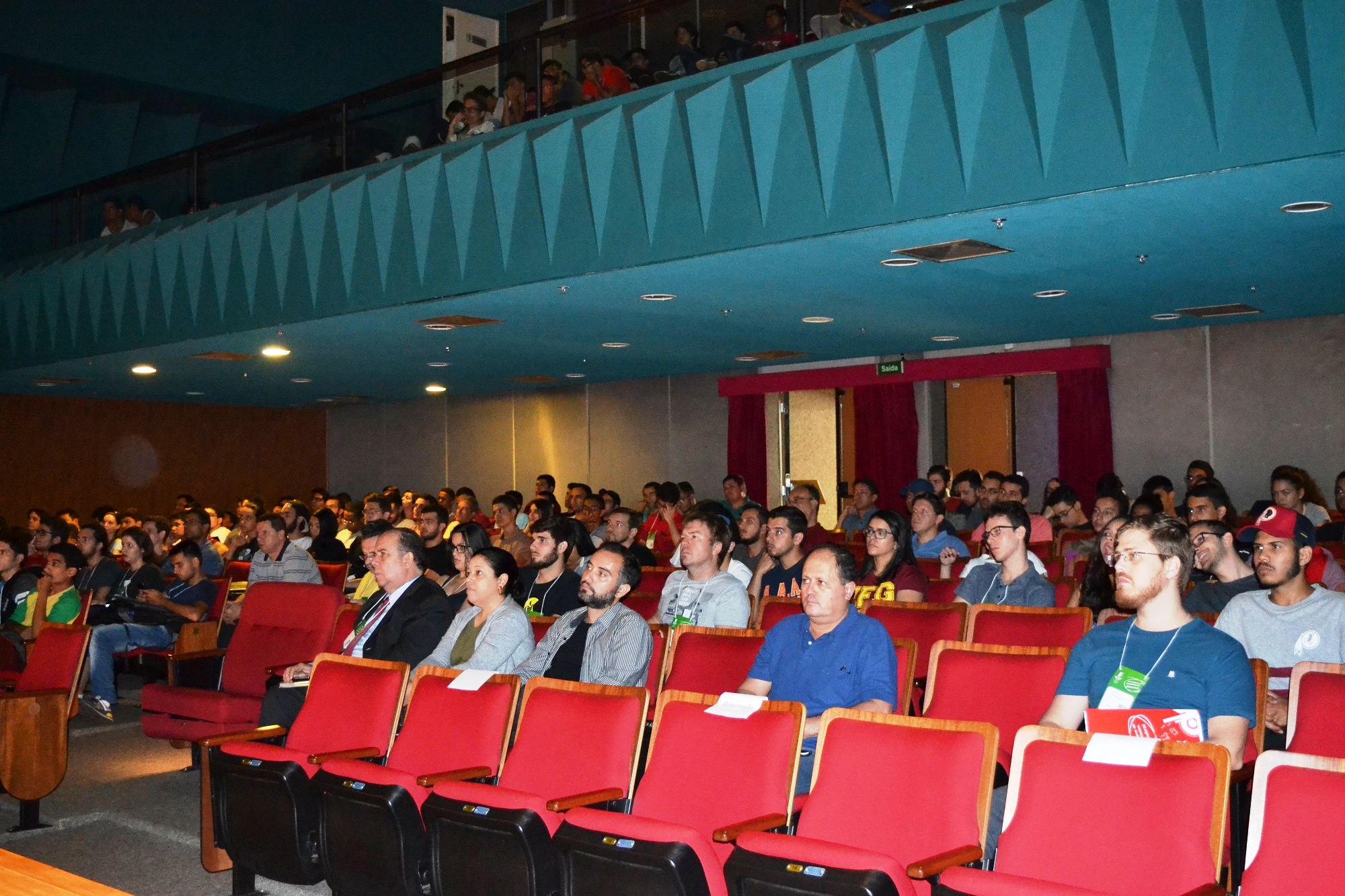 A abertura da Semana, no Teatro do IFG, contou com a participação da diretora-geral do Câmpus Goiânia, Maria de Lourdes Magalhães, e do chefe de departamento de áreas acadêmicas 4, professor Hipólito Barbosa, na mesa diretiva. Segundo o professor e um dos organizadores do evento, Hipólito Barbosa, o objetivo com o evento é trazer para os estudantes palestrantes de renome nacional e também apresentar pesquisas e projetos executados no Câmpus Goiânia. “Na semana, vamos mostrar o que os nossos alunos estão realizando, por exemplo, o projeto BAJA, o GynBoT. É uma grande semana, que reúne cinco coordenações e nove cursos entre técnicos e superiores, numa programação que contará com minicursos, palestras e exposições”.