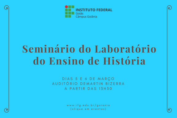 O Seminário do Laboratório do Ensino de História ocorrerá nos dias 5 e 6 de março, no Câmpus Goiânia