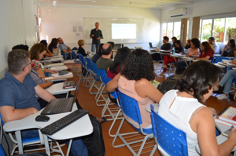 Iniciou hoje, dia 01º de agosto, a Semana de Planejamento Pedagógico 2019/2 do IFG Câmpus Goiânia Oeste. Docentes, técnicos-administrativos e terceirizados participaram do café da manhã de abertura da semana e inicio das atividades do segundo semestre letivo. Na sequência,o coordenador do curso de licenciatura em Educação Física (FEFD) da UFG, professor Sérgio de Almeida Moura, debateu com os docentes e técnicos-administrativos do Departamento de Áreas Acadêmicas (DAA) sobre a Avaliação Escolar: inclusão em curso ou armadilhas históricas da exclusão. Para encerrar as atividades da manhã, o gerente do Projeto IFG Digital, Cristiano Domingues, explicou aos presentes os benefícios advindos com a adesão ao projeto, demonstrou para os servidores como criar documentos, abrir processos e fazer requerimentos, e explicitou as vantagens do uso dos documentos digitais para agilizar os processos acadêmicos.