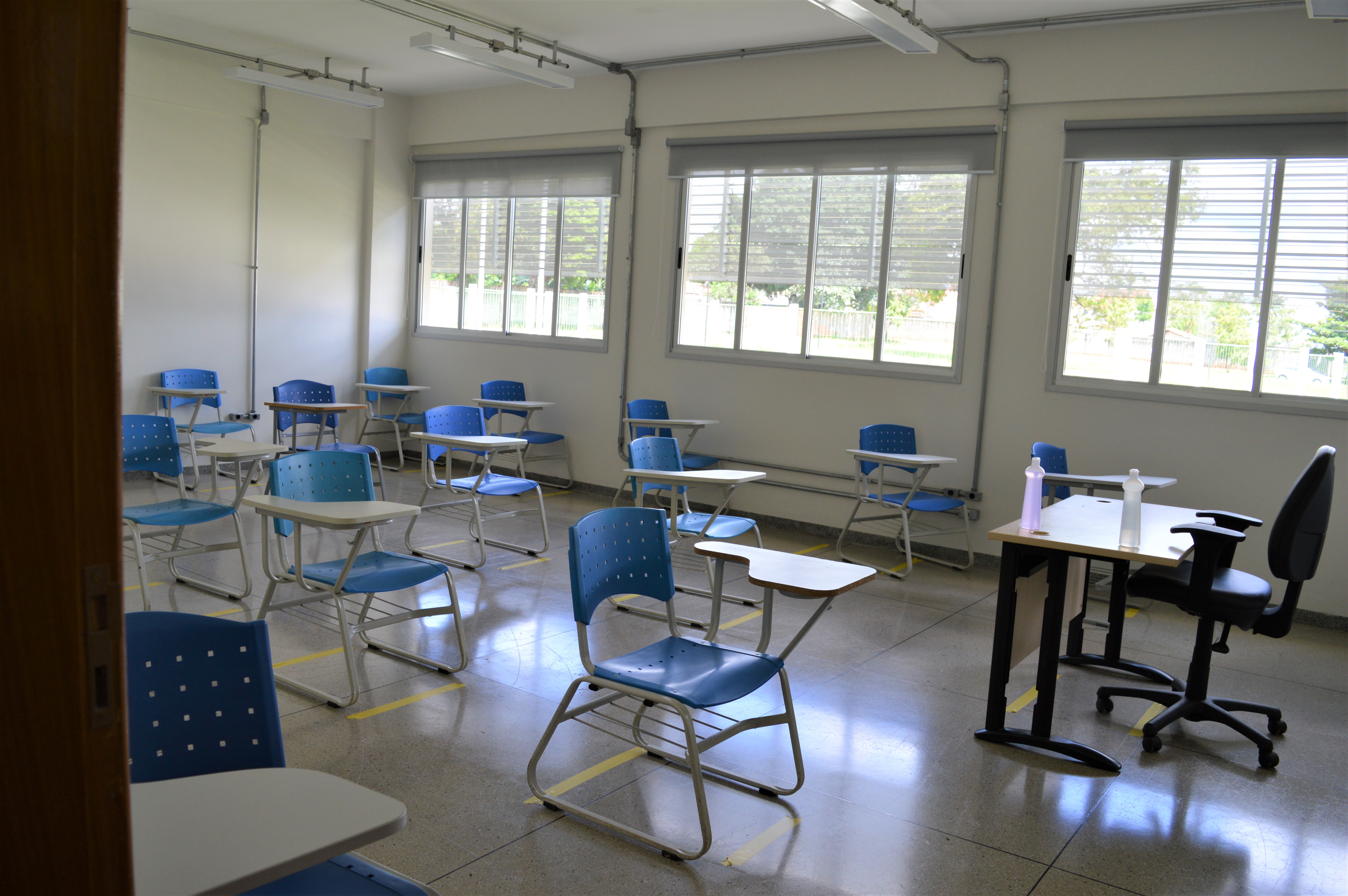 As salas de aulas estão demarcadas com faixas amarelas para que o distanciamento entre as carteiras seja respeitado. É importante que os estudantes estejam atentos as orientações presentes na Portaria 2096/2022 – Reitoria/IFG, o Protocolo de Biossegurança da Instituição. O protocolo é constituído de orientações, recomendações e medidas voltadas à prevenção, ao controle e à mitigação do contágio da Covid-19.