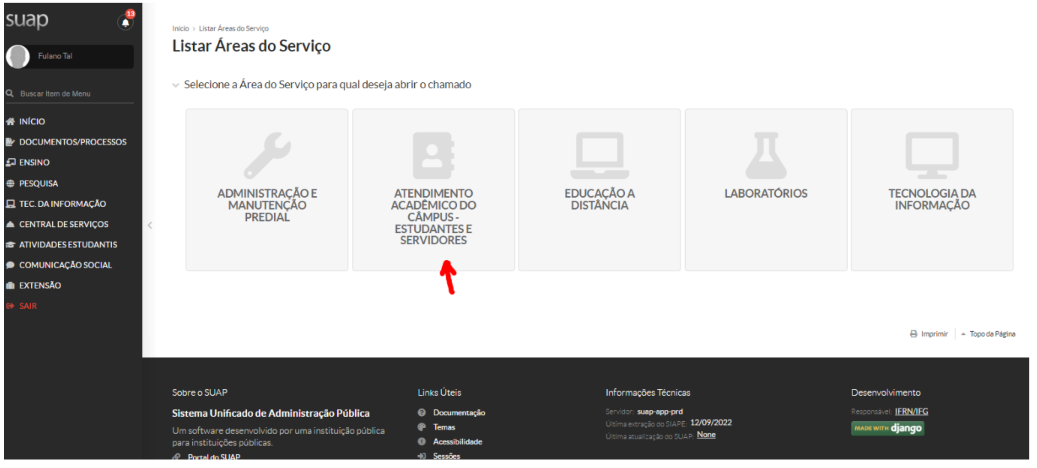 3) Na tela seguinte, clique em "Atendimento Acadêmico do Câmpus - Estudantes e Servidores"