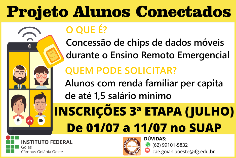 Interessados em receber o chip deverão se inscrever até dia 11 de julho no SUAP